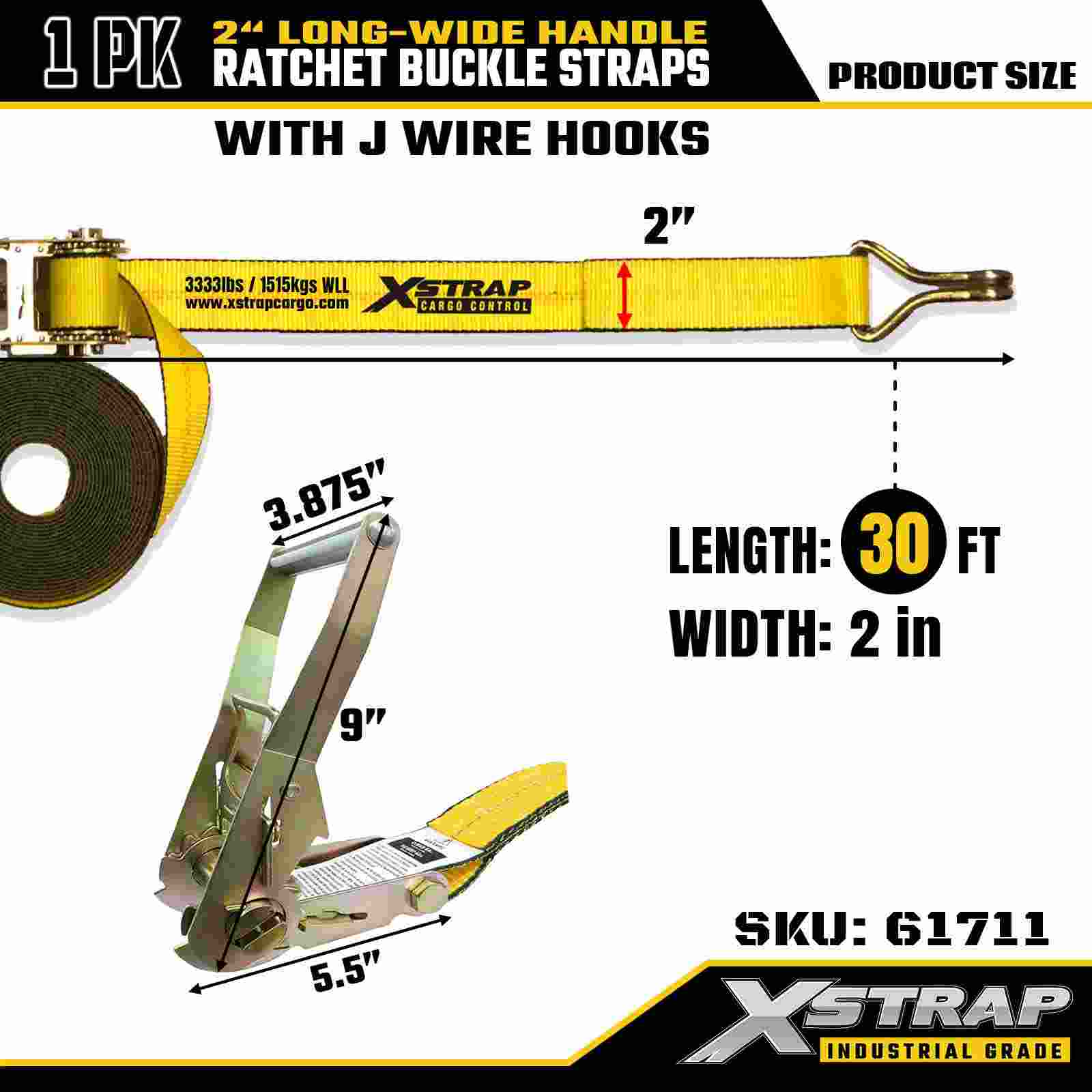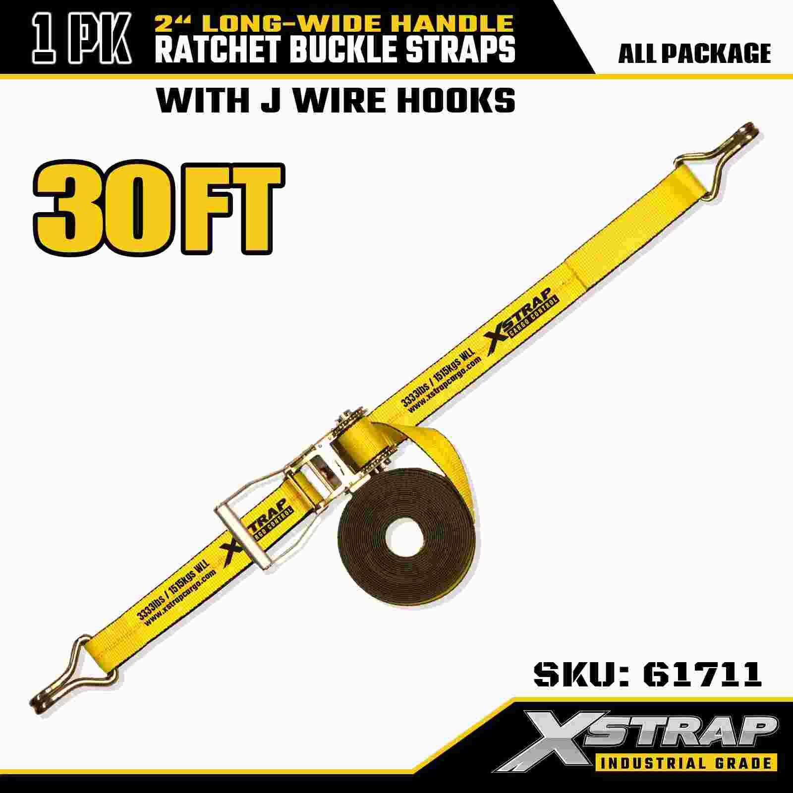 Xstrap 61711 Wysokiej jakości paski do wiązania z grzechotką 2" x 30 stóp (1 opakowanie) z haczykami z drutu, wytrzymałość na zerwanie 10 000 funtów, wytrzymałe wiązanie do wymagającego transportu