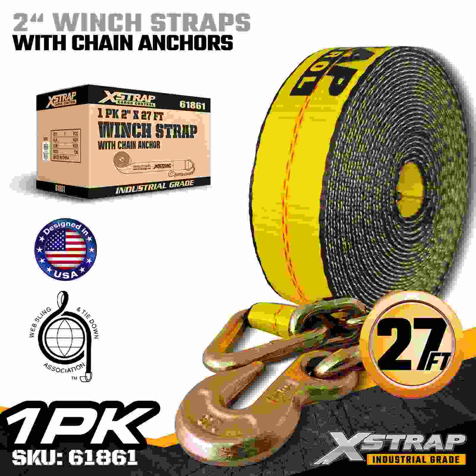 Standardowy pasek do kabestanu 2" × 27 stóp z kotwami łańcuchowymi