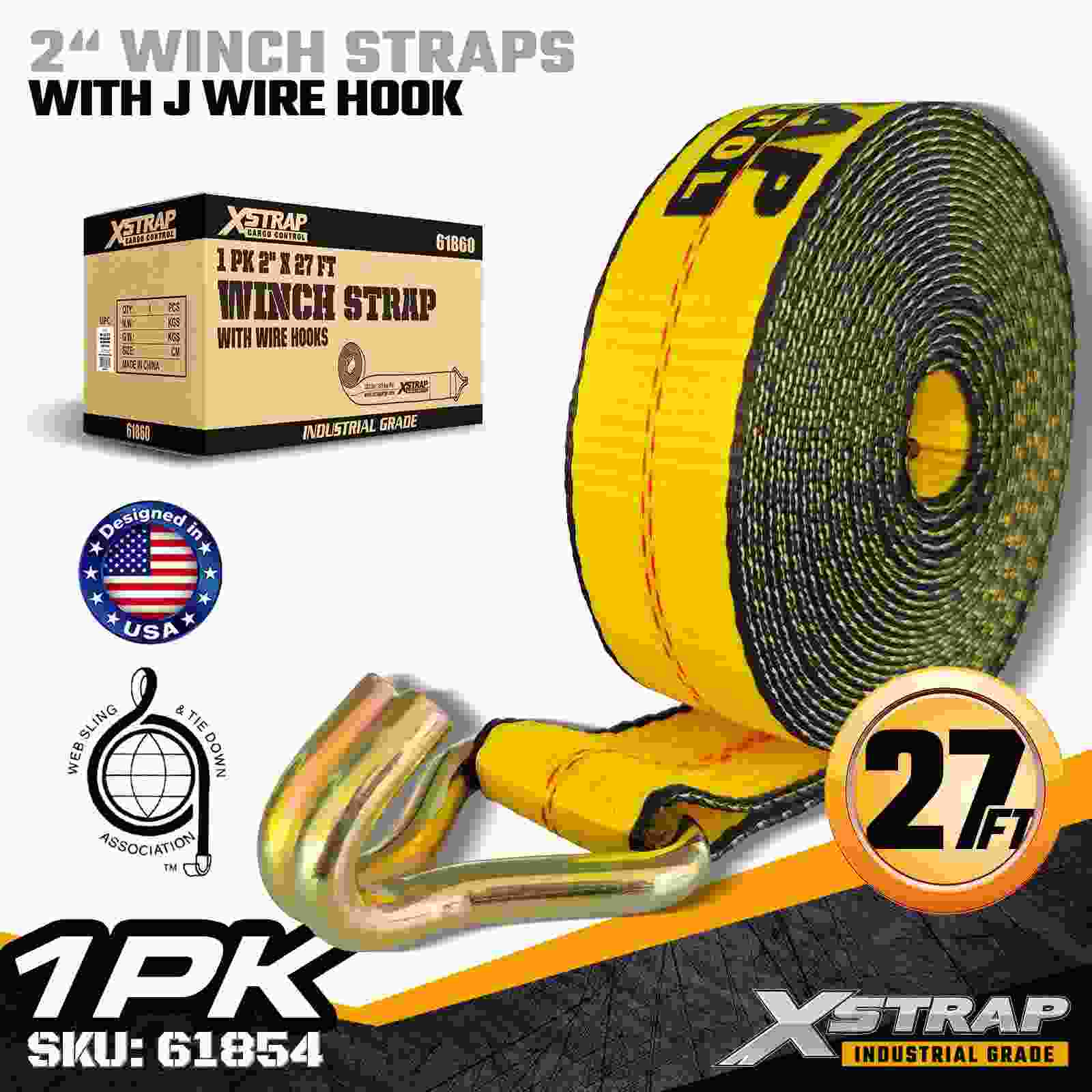 Standardowy pas wciągarki Xstrap 61854 o wymiarach 2" × 27 stóp to trwałe i niezawodne rozwiązanie do mocowania ładunku przeznaczone do przyczep z platformą i transportu profesjonalnego. Ten 2-calowy pas wciągarki, wyposażony w mocny hak druciany i taśmę poliestrową o wysokiej wytrzymałości, zapewnia maksymalne obciążenie robocze 3333 funtów i wytrzymałość na zerwanie 10 000 funtów. Idealnie nadaje się do zabezpieczania palet, drewna, rur, maszyn i ładunków ogólnych podczas codziennych operacji holowania.