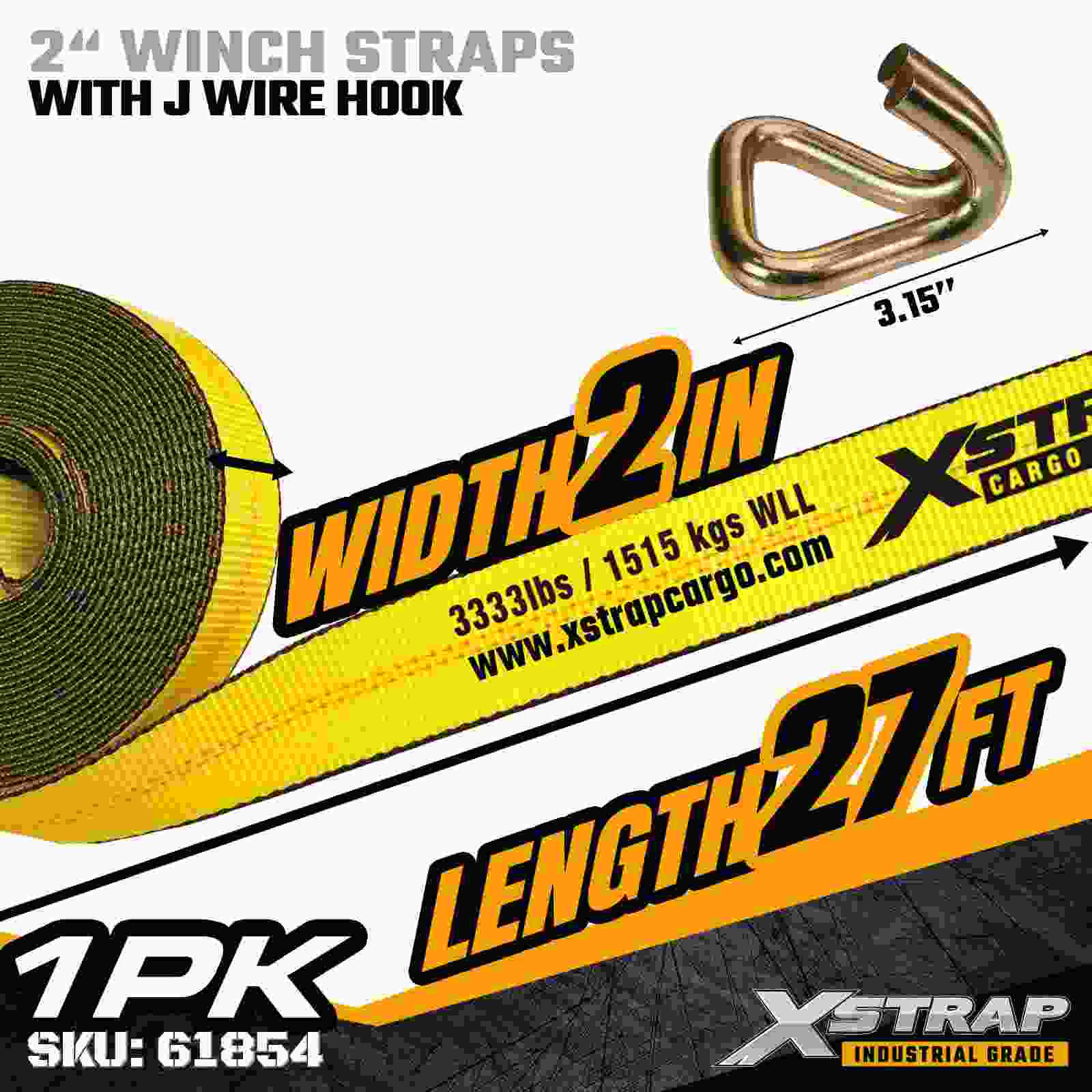 Standardowy pasek do kabestanu 2" × 27 stóp z hakiem drucianym