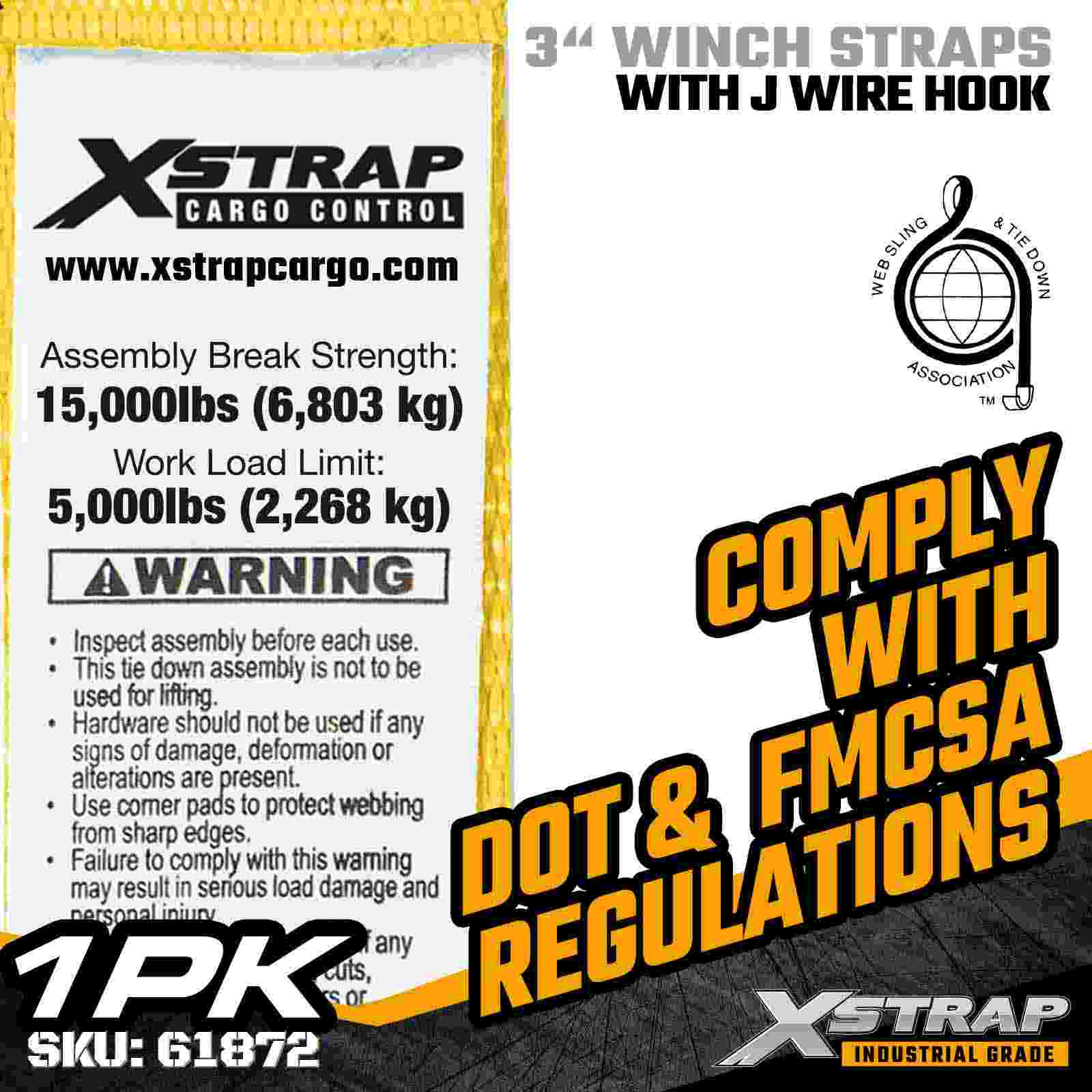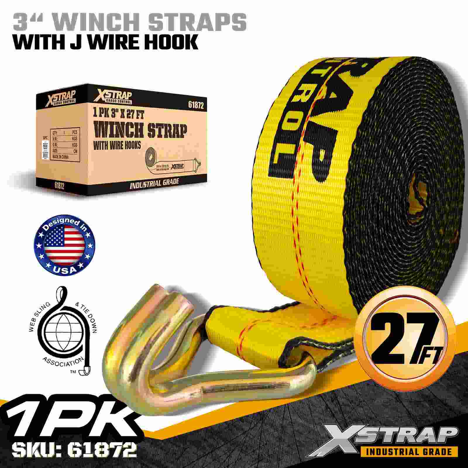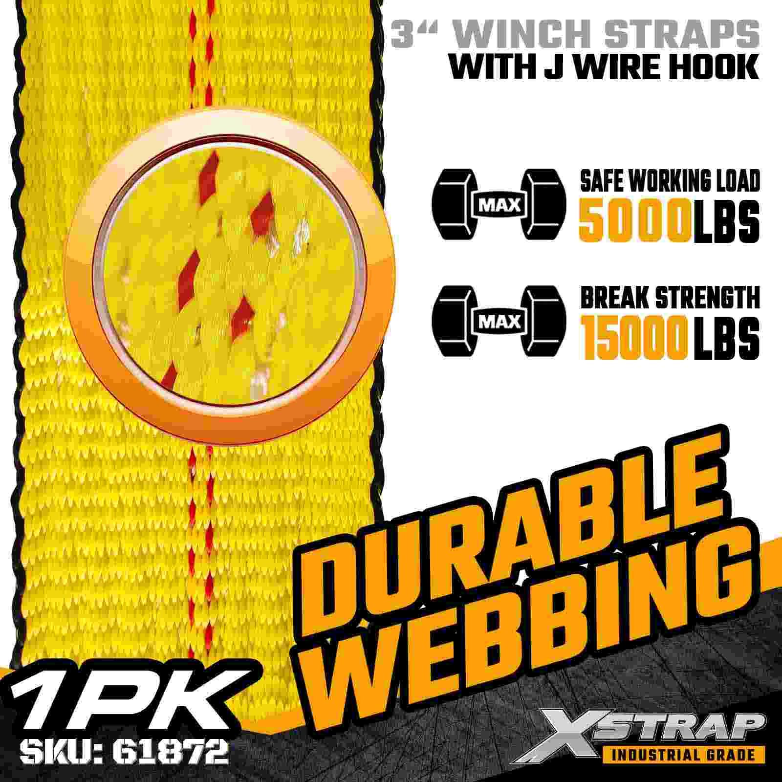 Standardowy pas wciągarki Xstrap 61872 o wymiarach 3" × 27 stóp to rozwiązanie do mocowania ładunków o dużej wytrzymałości, przeznaczone do przyczep z platformą i transportu przemysłowego. Wyposażony we wzmocniony hak druciany i bardzo szeroką 3-calową taśmę poliestrową, ten 3-calowy pas wciągarki zapewnia maksymalne obciążenie robocze 5000 funtów i wytrzymałość na zerwanie 15 000 funtów. Konstrukcja haka drutowego oferuje elastyczne opcje mocowania, dzięki czemu jest idealnym rozwiązaniem dla operatorów potrzebujących szybkich i wszechstronnych punktów połączeń podczas codziennych operacji transportowych.