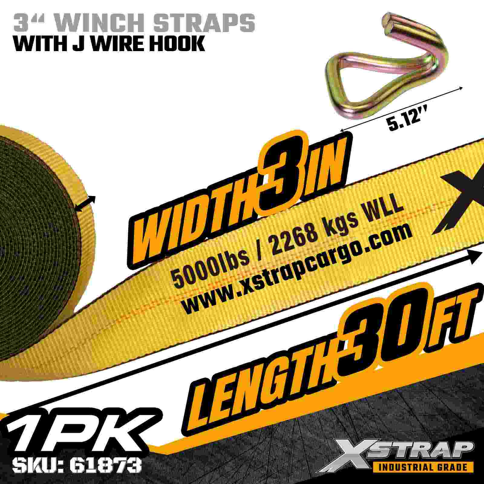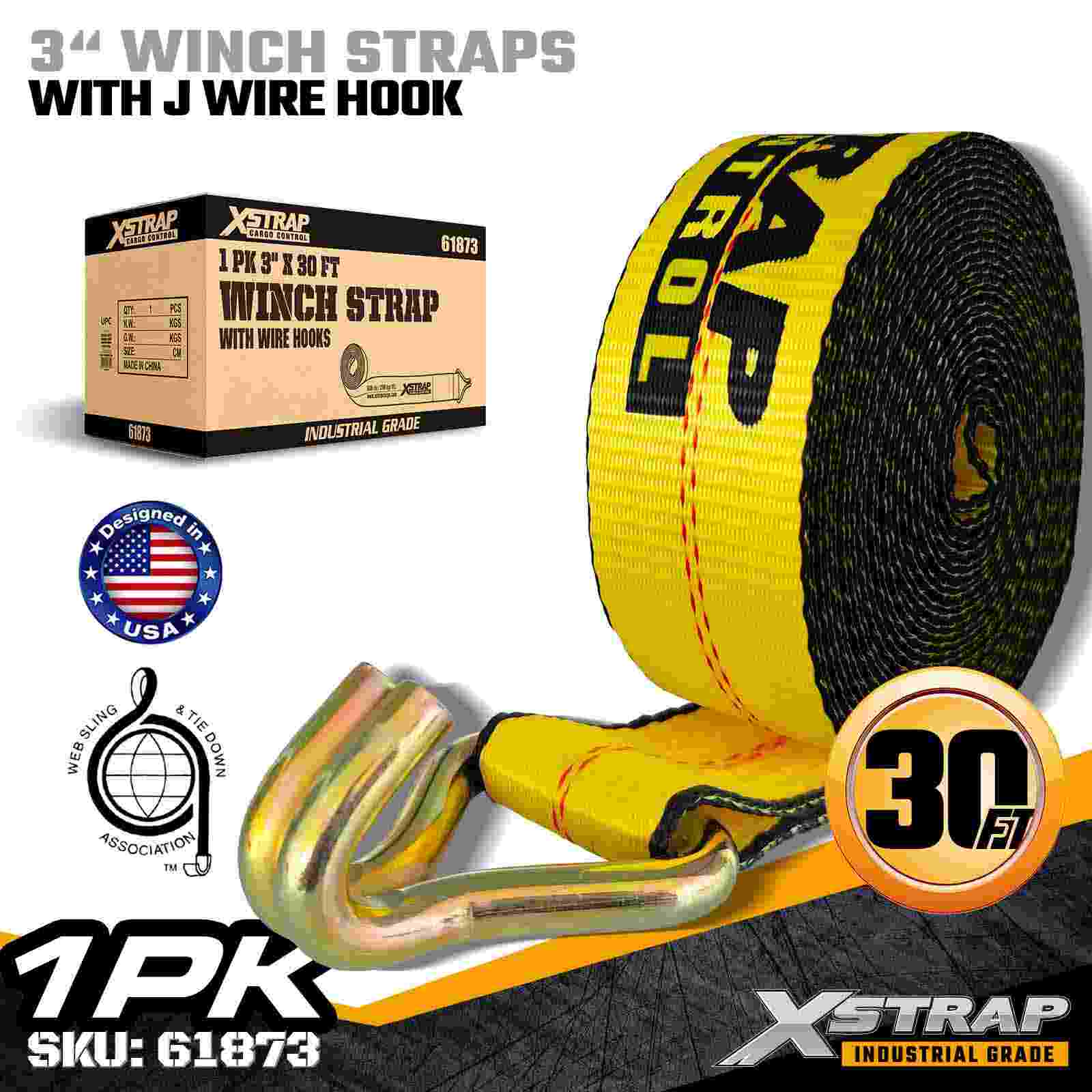 Standardowy pas wciągarki Xstrap 61873 o wymiarach 3" × 30 stóp to wytrzymały pas do mocowania ładunku przeznaczony do przyczep z platformą i ładunków ponadgabarytowych. Wyposażony w wzmocniony hak druciany i bardzo szeroką 3-calową poliestrową taśmę, ten 3-calowy pasek wciągarki zapewnia obciążenie robocze 5000 funtów i wytrzymałość na zerwanie 15 000 funtów. Wydłużona długość 30 stóp zapewnia dodatkowy zasięg, dzięki czemu idealnie nadaje się do zabezpieczania szerszych, wyższych, lub ładunki o nieregularnym kształcie, które wymagają elastycznych opcji mocowania.