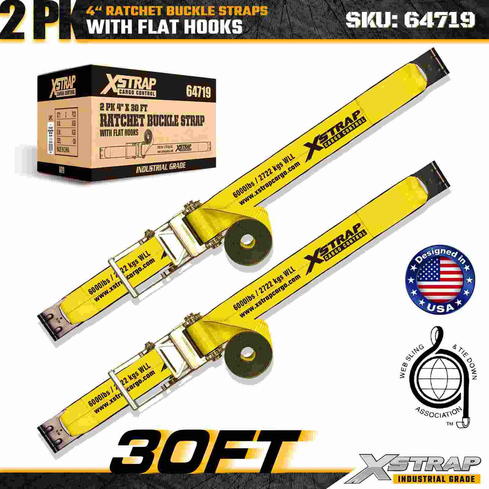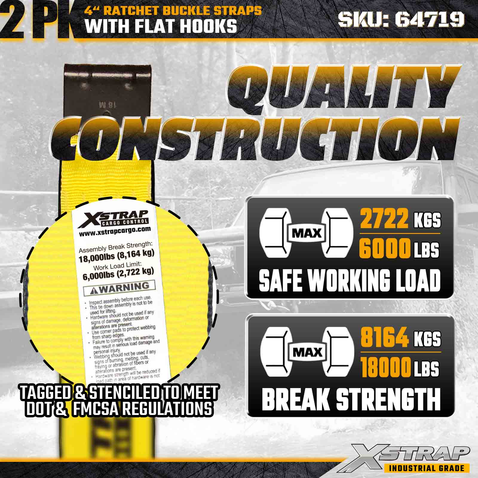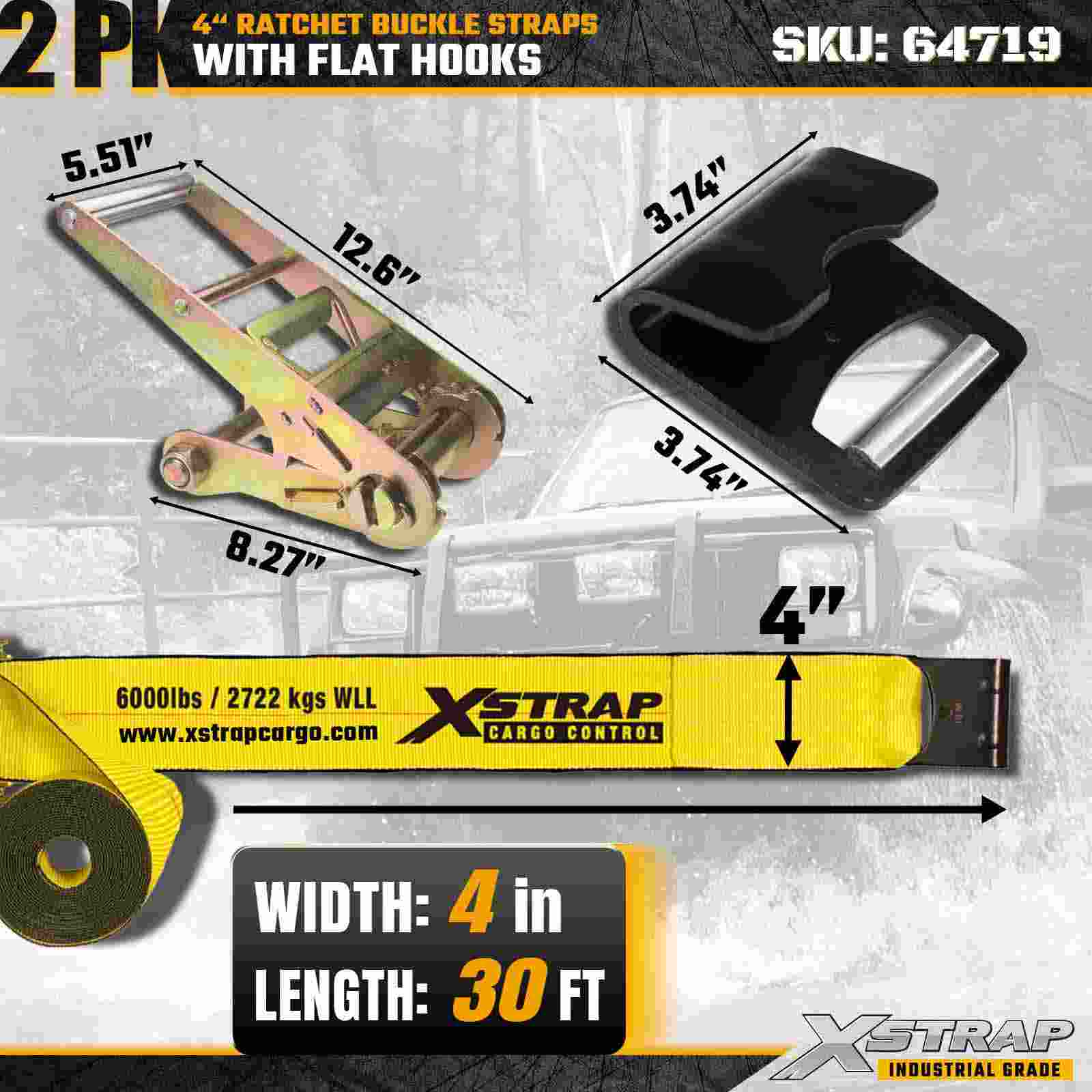 Pasy z klamrą zapadkową Xstrap 64719 o wymiarach 4" × 30 stóp (2 szt.) zapewniają wytrzymałe zabezpieczenie ładunku za pomocą wzmocnionych płaskich haczyków i trwałego mechanizmu zapadkowego. Wytrzymałość na zerwanie wynosząca 6000 funtów i wytrzymałość na zerwanie wynosi 18 000 funtów. Idealnie nadają się do transportu platform, transportu maszyn i ładunków przemysłowych.