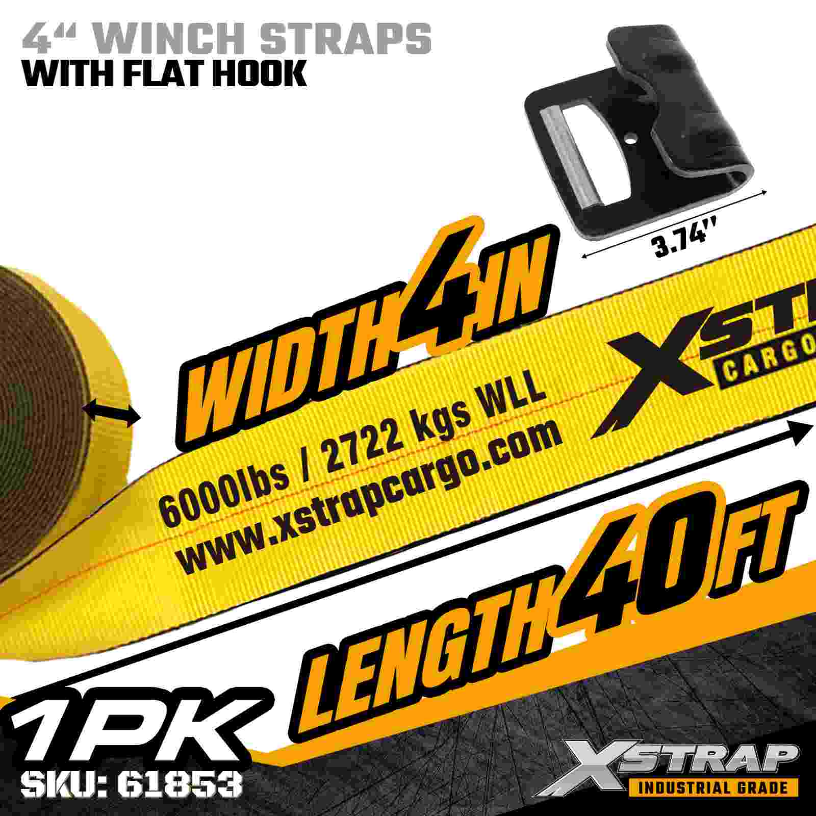 Standardowy pasek do kabestanu 4" × 40 stóp z płaskim hakiem