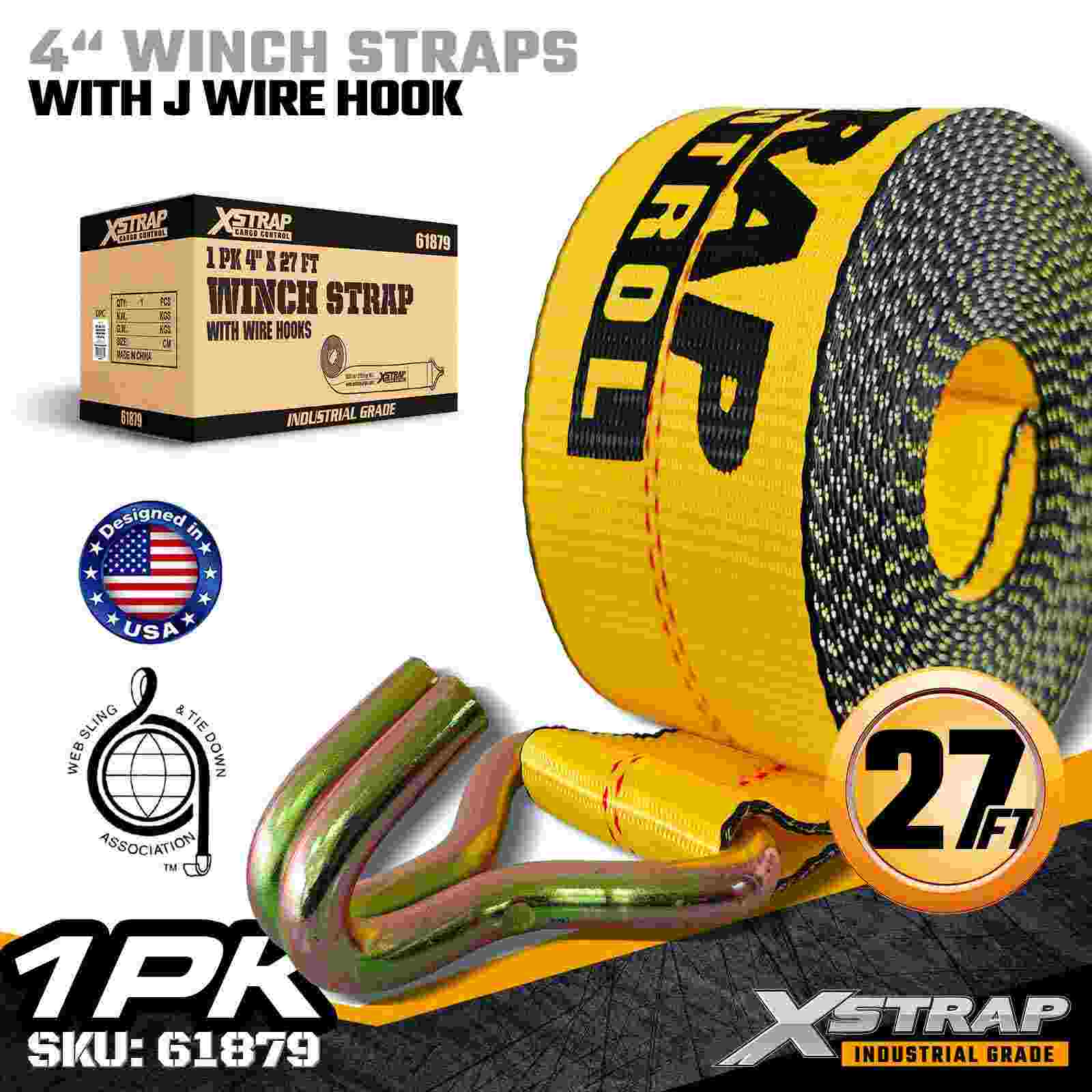 Standardowy pasek do kabestanu 4" × 27 stóp z hakiem drucianym