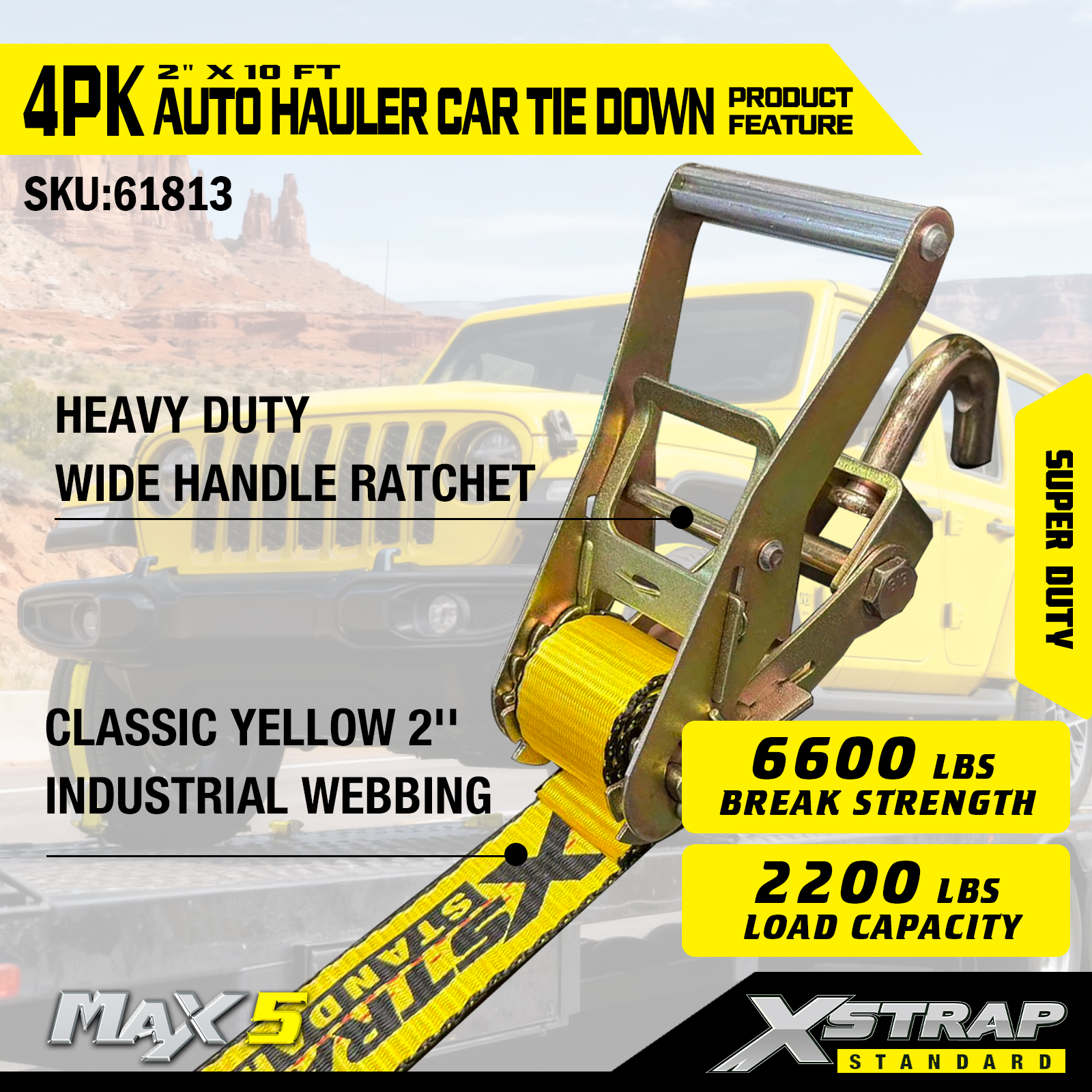 Pasy do ciągnięcia samochodów Xstrap Wytrzymałe, 6600 funtów Wytrzymałość na zerwanie — Pasy do mocowania opon do przyczep, opaski mocujące nad kołami z gumowymi zatrzaskami do samochodów typu SUV, ciężarówka, ATV, UTV