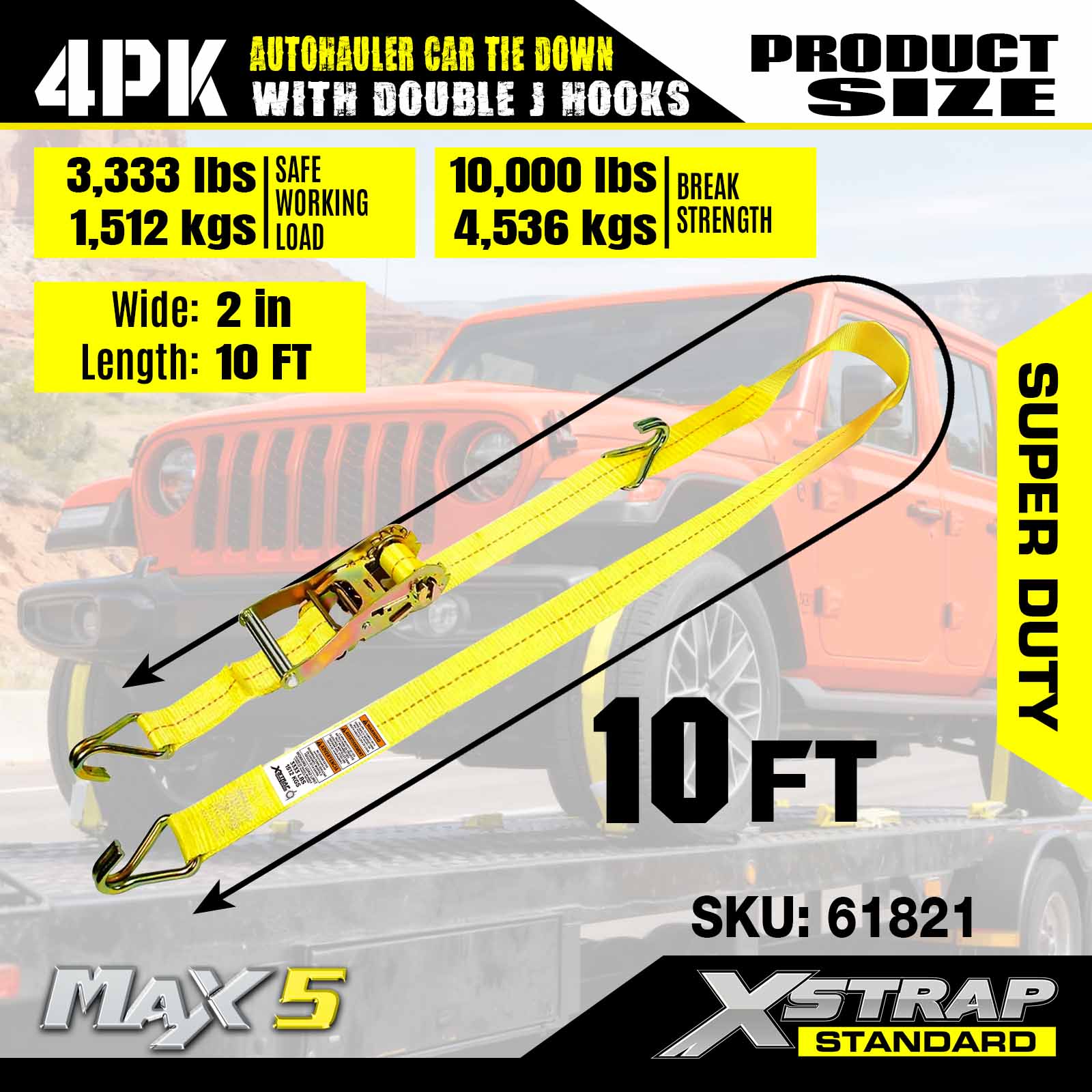 - Super Duty Performance: przystosowany do bezpiecznego obciążenia roboczego 3333 funtów i wytrzymałości na zerwanie 10 000 funtów, jest zbudowany do obsługi ciężkich pojazdów i wymagających scenariuszy transportowych.