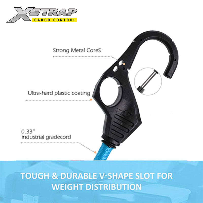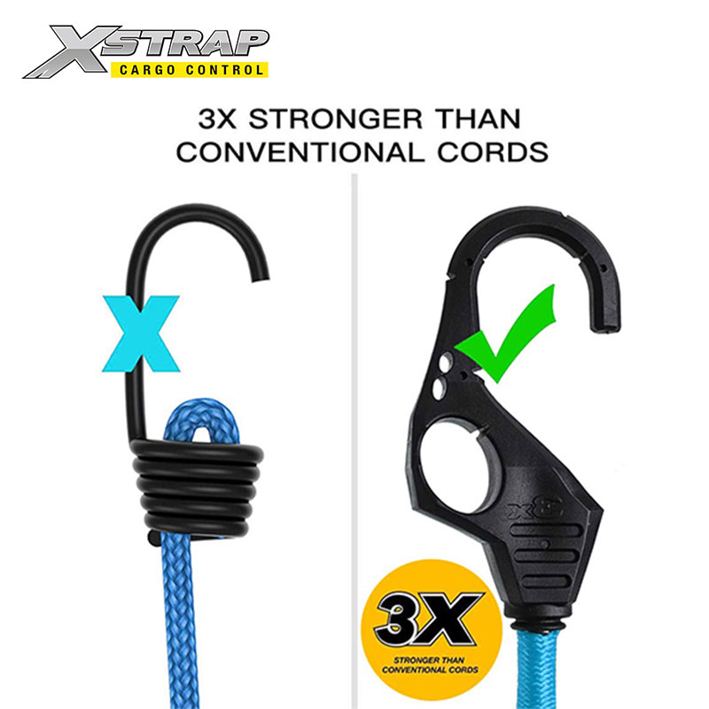 Tymczasem haczyki są 3 razy mocniejsze niż zwykłe haczyki na bungee. Więc nie jest łatwo złamać. Jest bezpieczniejszy niż inne liny bungee.