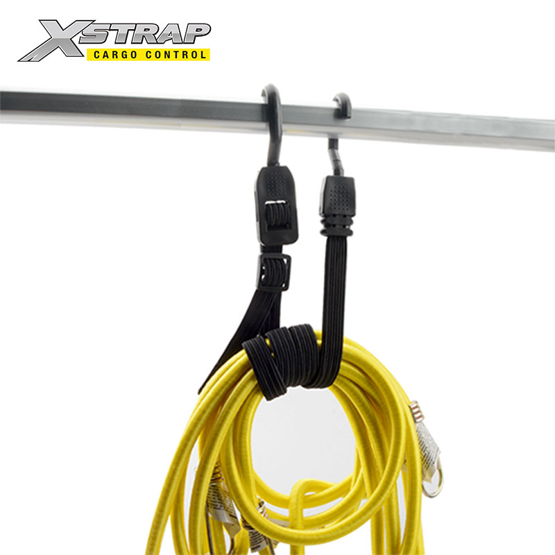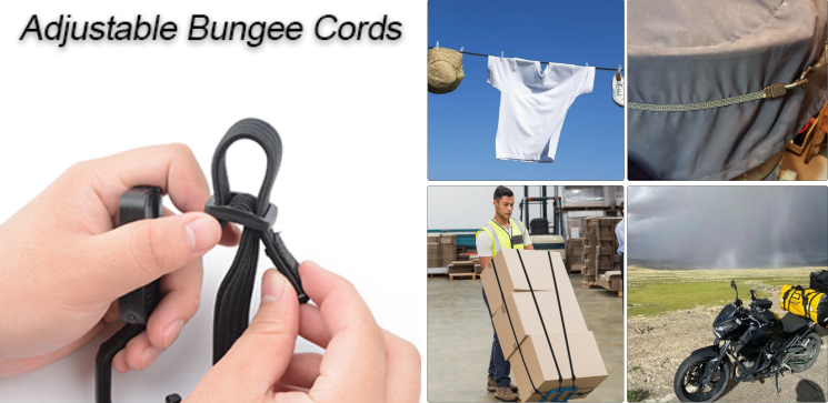 Regulowane linki bungee zapewniają większą stabilność i zmniejszoną tendencję do wbijania się w przedmioty. Są wszechstronne i nadają się do szerokiego zakresu zastosowań, w tym do sprzętu, organizowania przechowywania, wiązania bagażu lub plandek, zabezpieczania sprzętu na świeżym powietrzu, ogrodu, garażu lub zastosowań podróżniczych.