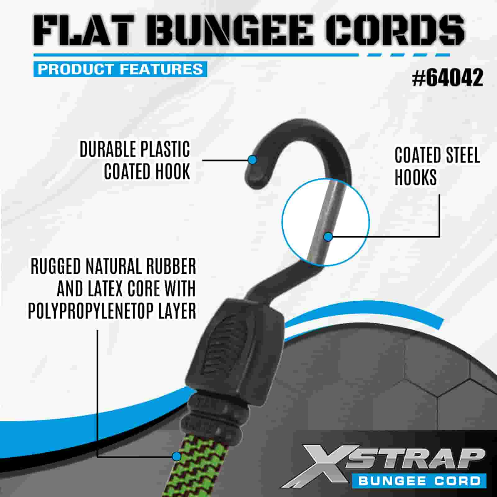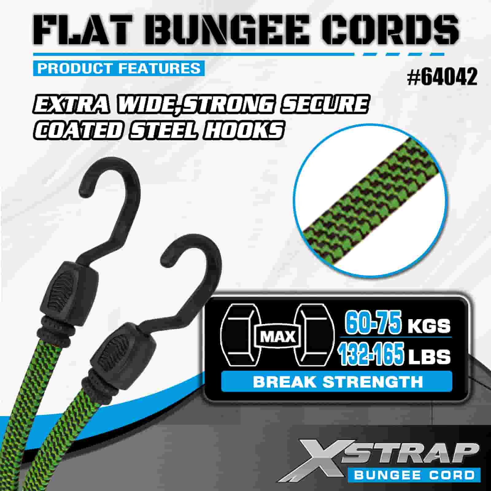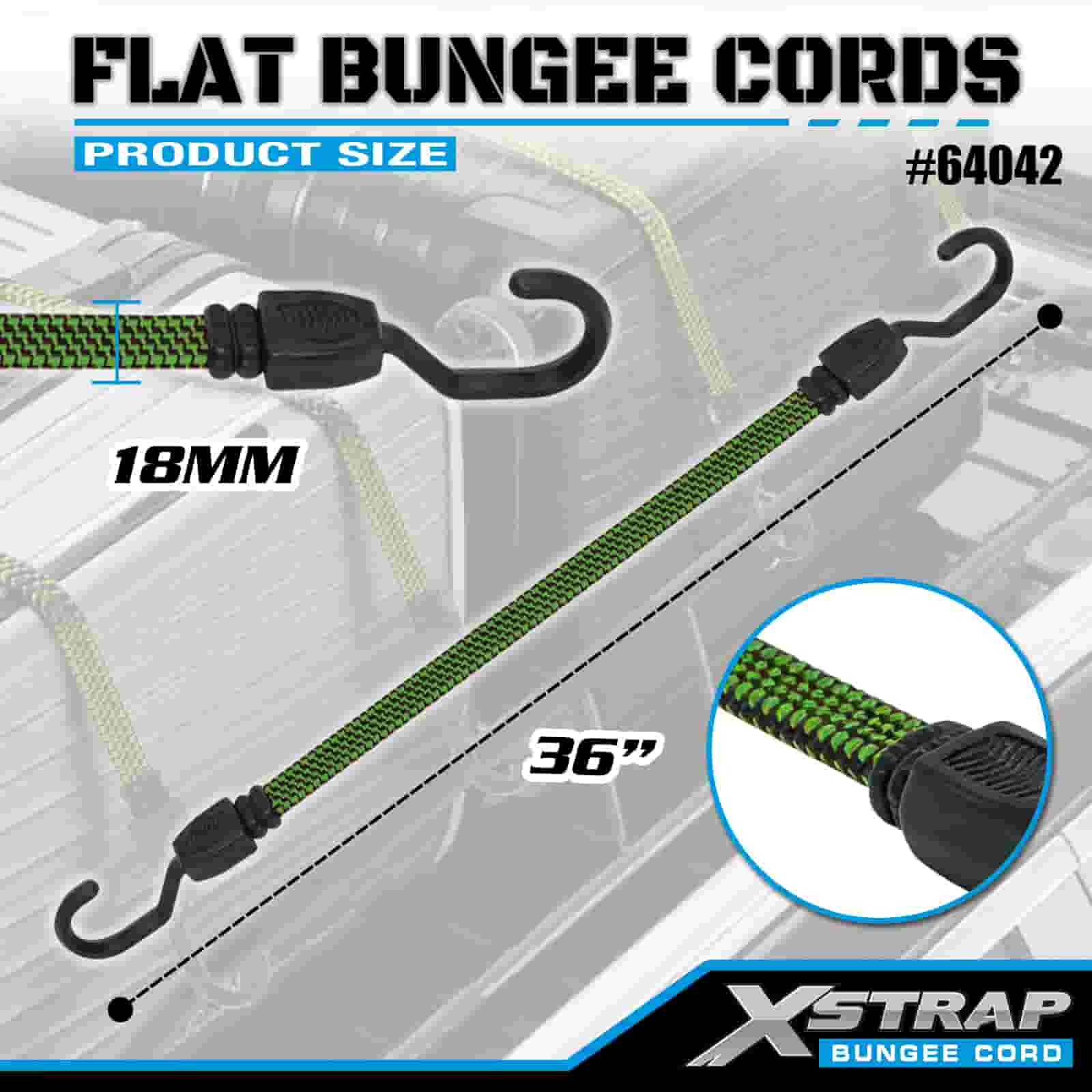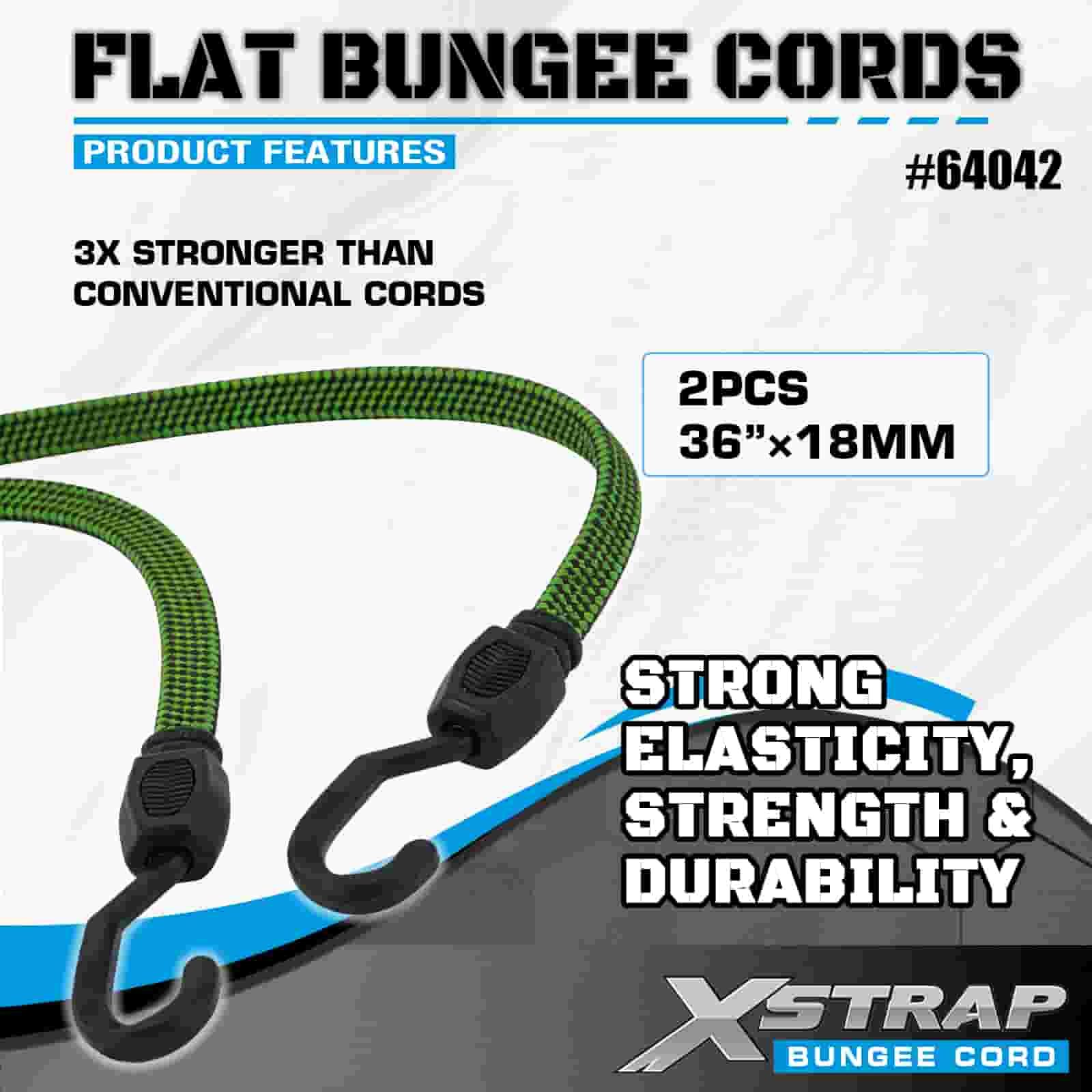 Płaskie linki bungee Xstrap 2PK 18 mm x 36 cali, wytrzymałość na zerwanie 132-165 funtów z mocnymi haczykami do kontroli ładunku .