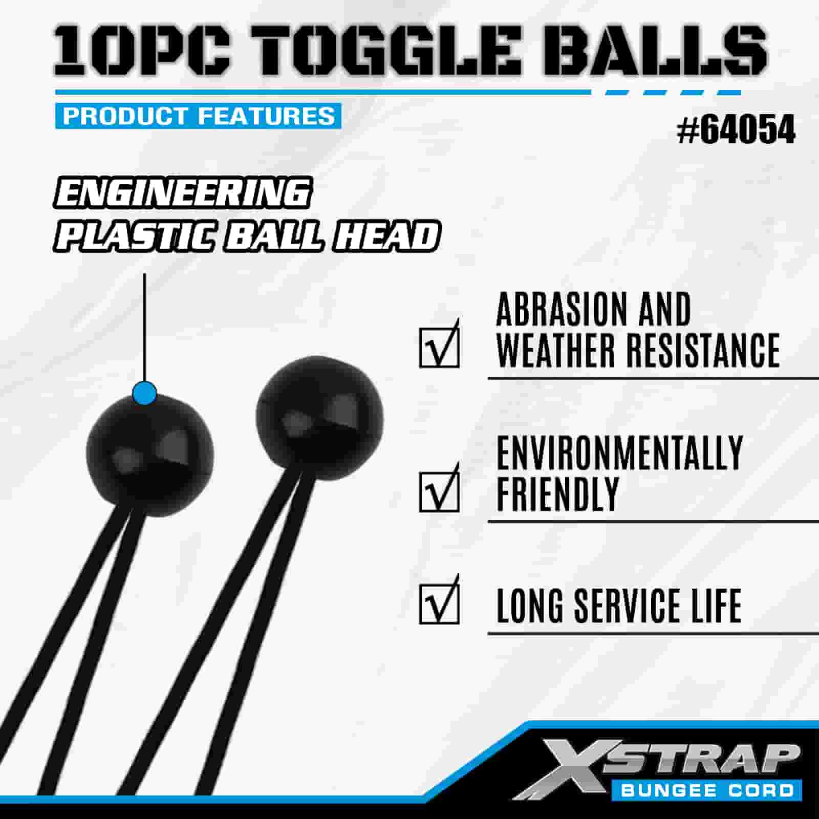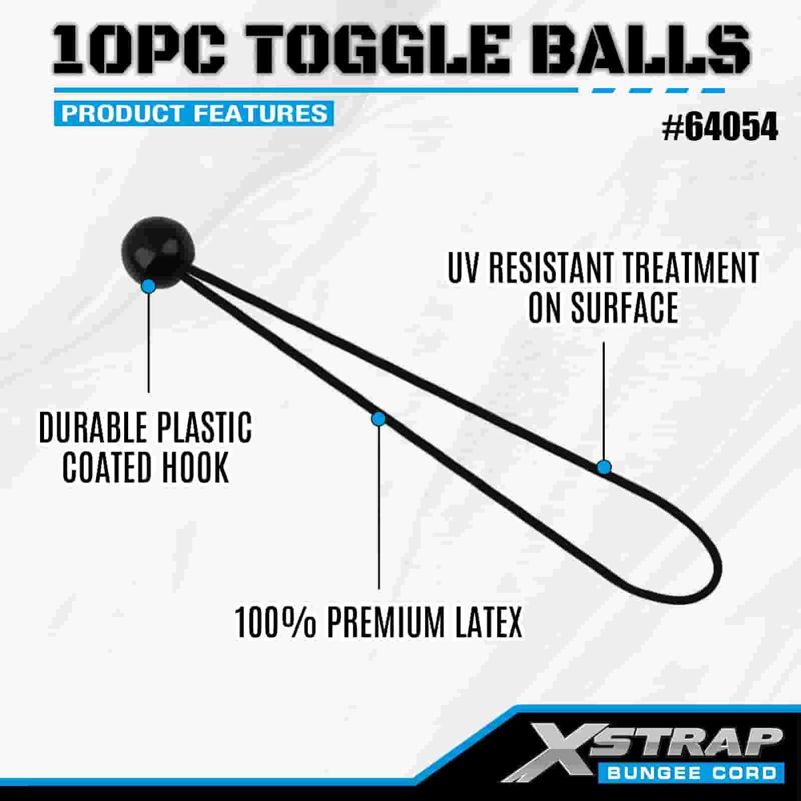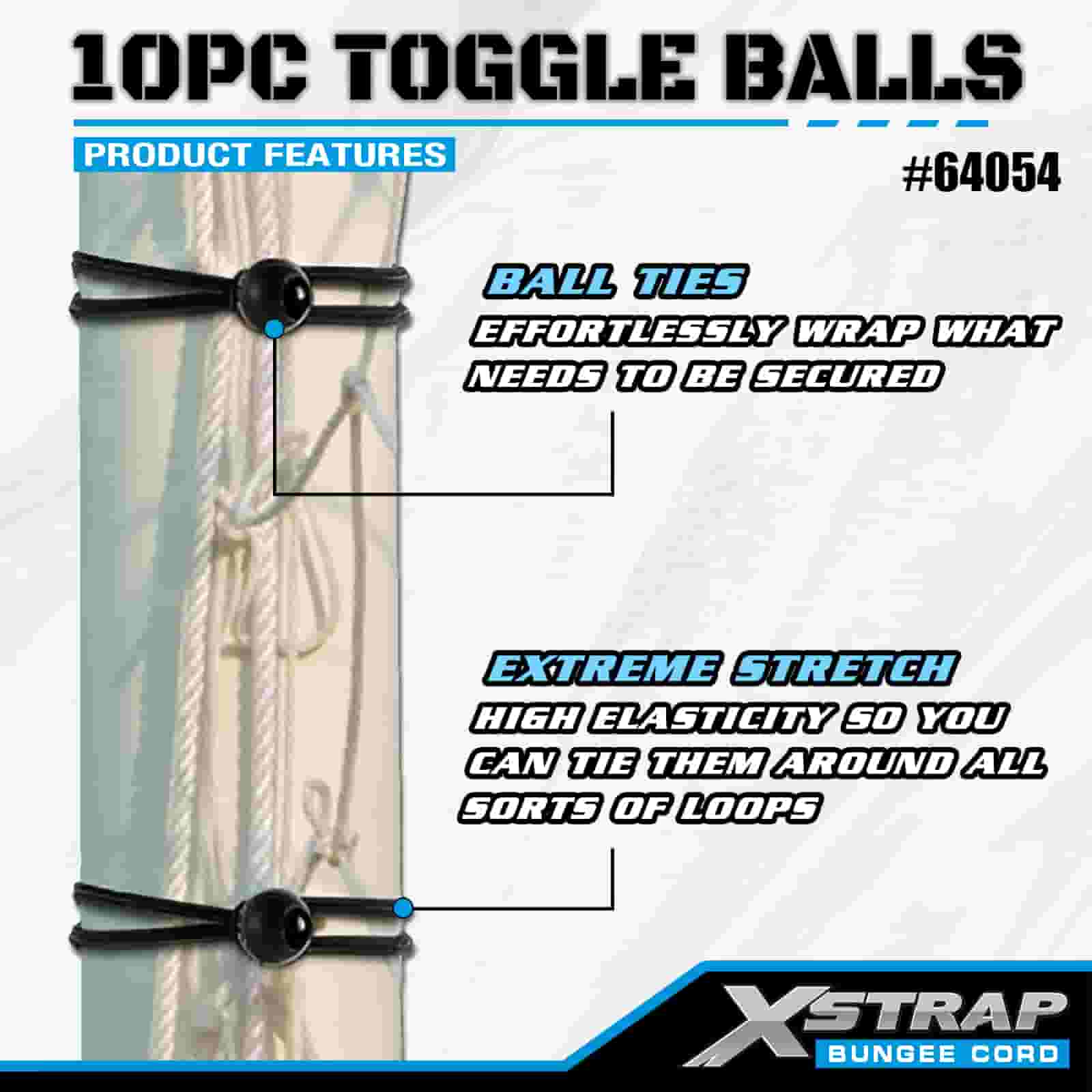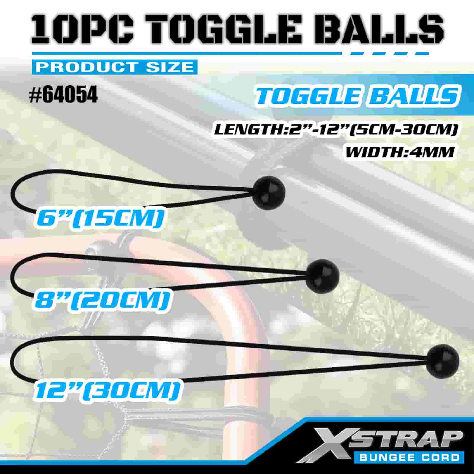 Xstrap 10PK Kulki przegubowe 4 mm x 2”–12”, różne rozmiary kulek do bungee do kontroli ładunku.