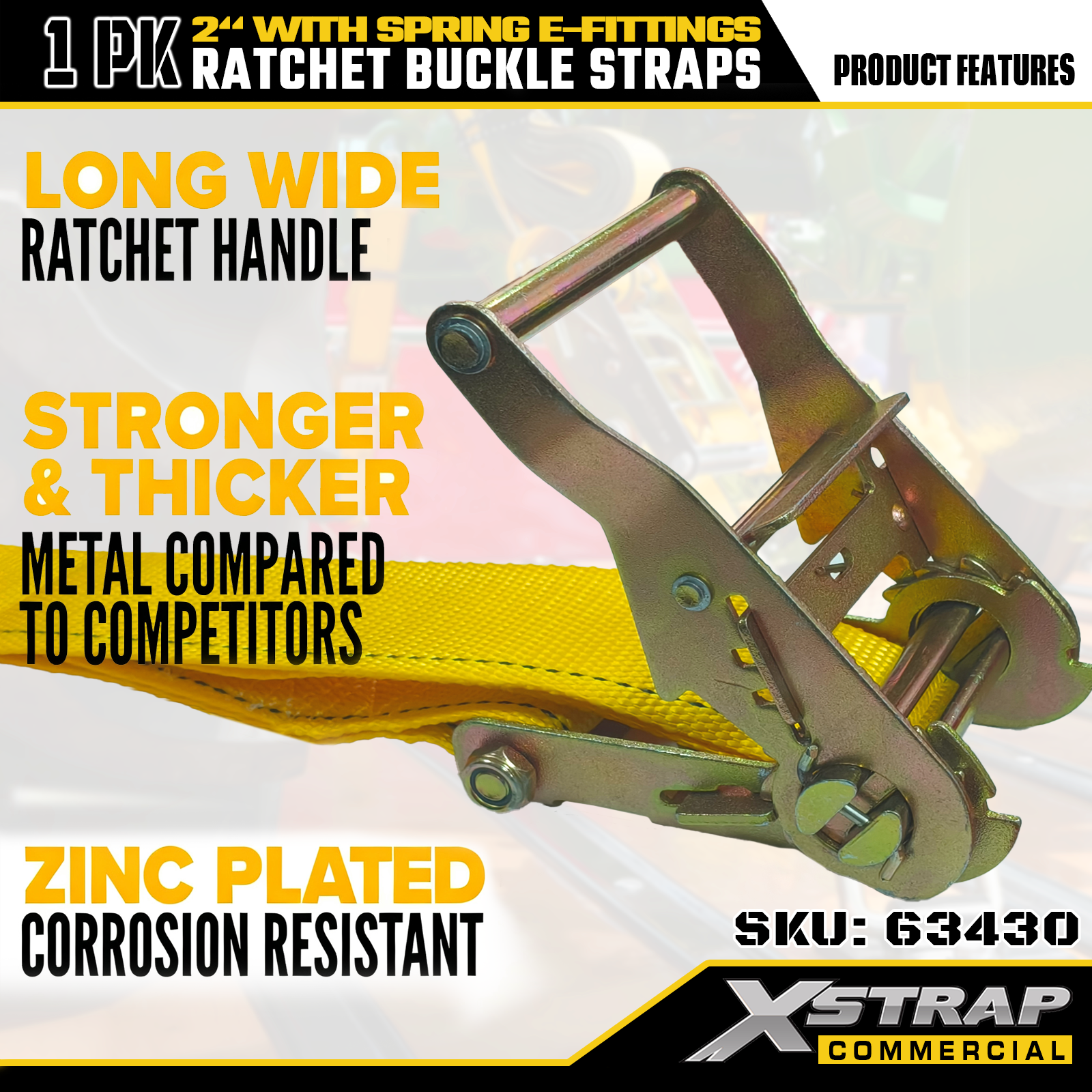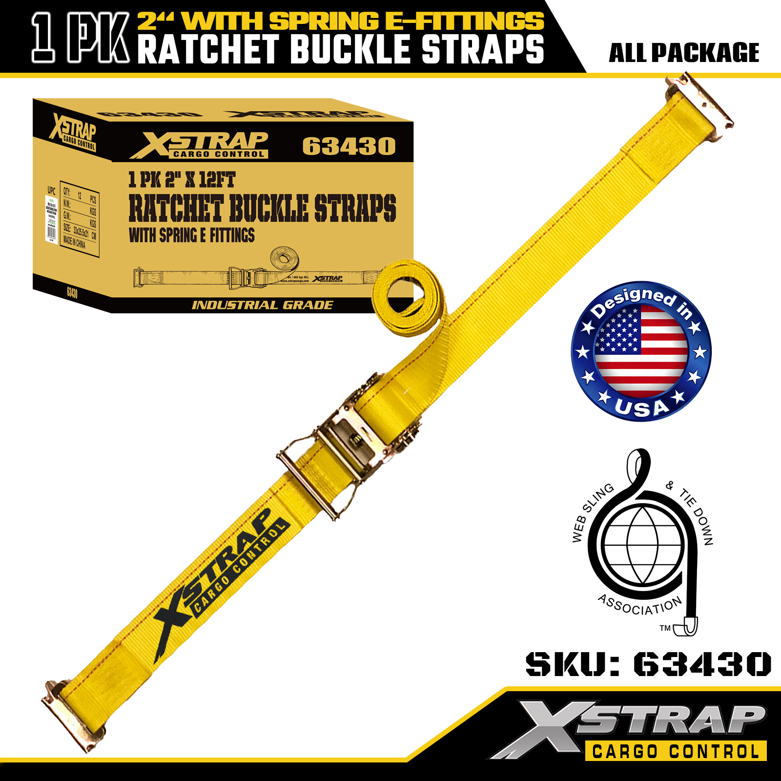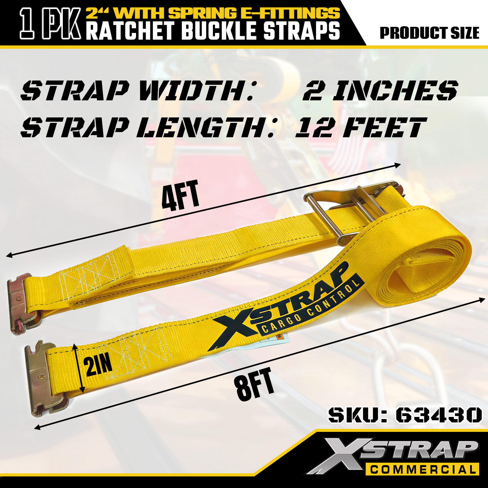 1 opakowanie poliestrowych pasków mocujących z grzechotką Xstrap ze złączami sprężynowymi E, wytrzymałe pasy zabezpieczające ładunek o wymiarach 2" x 12", udźwig 4401 funtów (1467 funtów) do ciężarówek, kosiarek i pojazdów terenowych