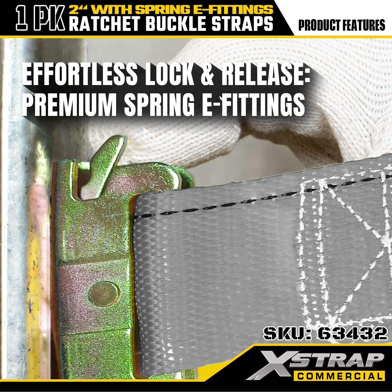 Zestaw zapadkowych pasów mocujących Xstrap, 2" x 16" poliestrowych pasów zabezpieczających ładunek, bezpieczne obciążenie robocze 1467 funtów i siła zrywająca 4401 funtów, ze sprężynowymi złączami elektrycznymi do ciężarówek, kosiarek i pojazdów terenowych