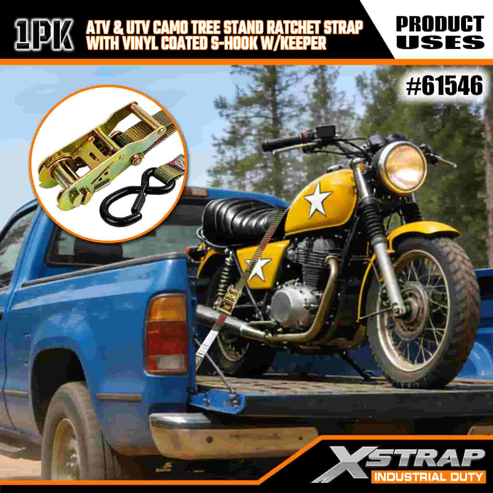 Pasek zapadkowy Xstrap z haczykami zabezpieczającymi S pokrytymi winylem, poliestrowy pasek mocujący o wymiarach 1” x 8 stóp, paski mocujące ładunek o udźwigu 666 funtów z hakami zabezpieczającymi S do przyczepy, przyczepy z płaską platformą, łodzi narciarskiej, małego samochodu, ciężkiego sprzętu.