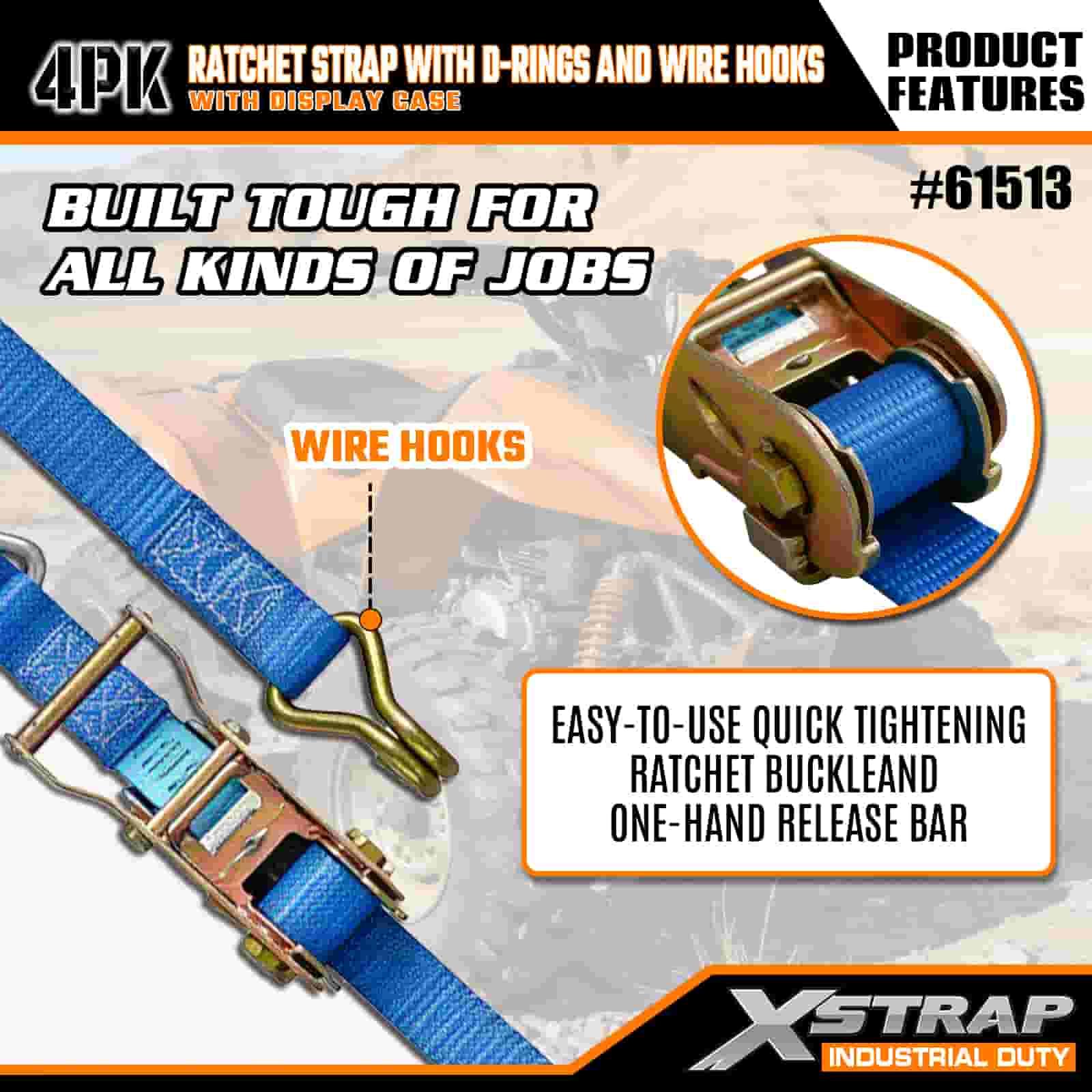 - Długość 16FT w zorganizowanym opakowaniu: Sprzedawany jako zestaw 4 pasków (w opakowaniu ekspozycyjnym) z wbudowanymi cewkami do przechowywania; każdy pasek ma szerokość 1 cala i długość 16 stóp, idealnie nadaje się do zabezpieczania motocykli, ciężkich ładunków i sprzętu przemysłowego.