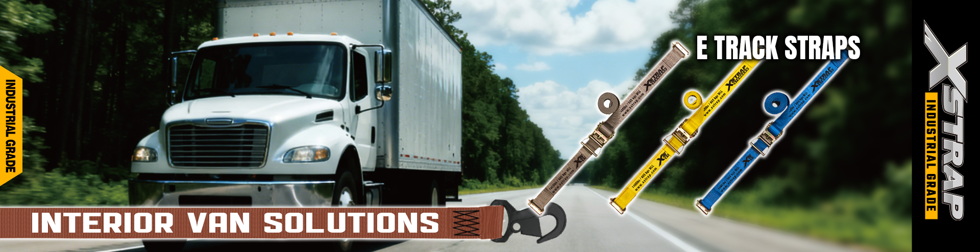 Paski gąsienicowe E współpracują z systemem szyn E-Track zainstalowanym wewnątrz furgonetki lub przyczepy.