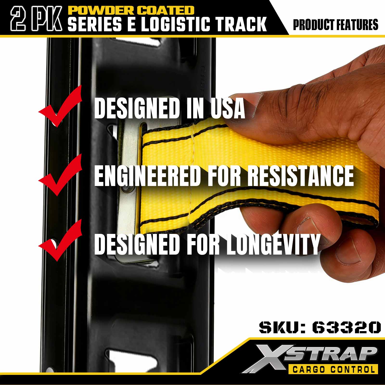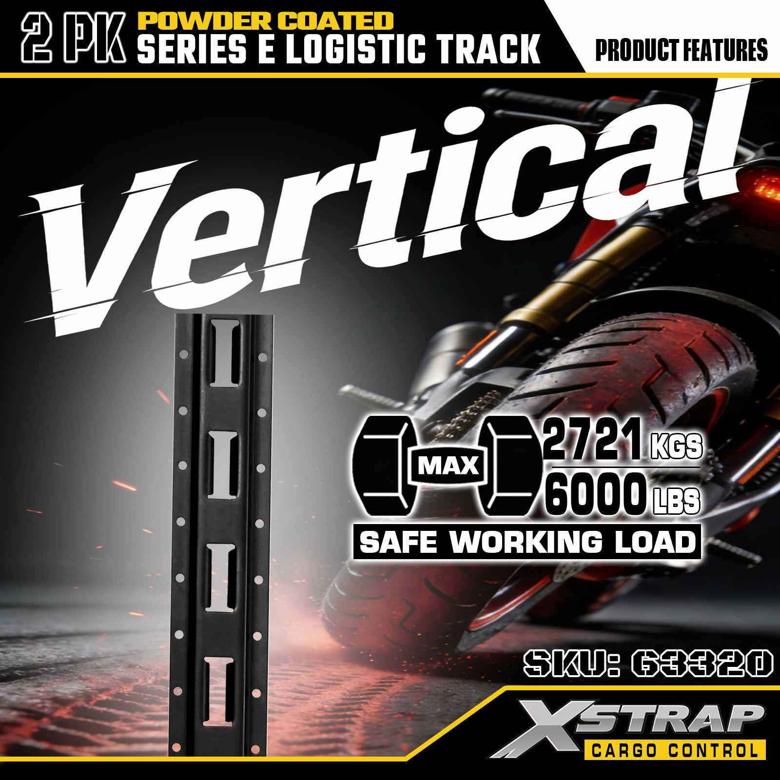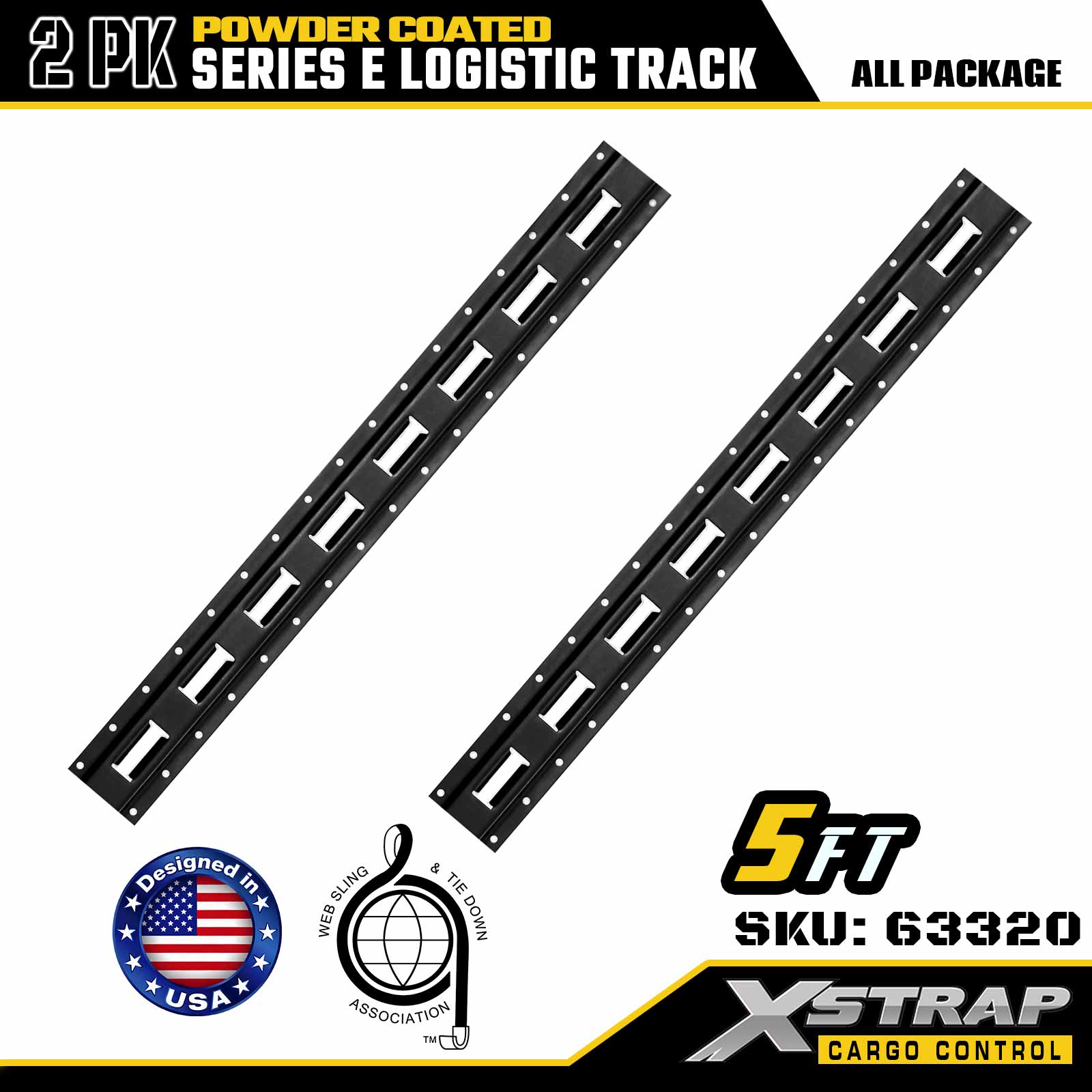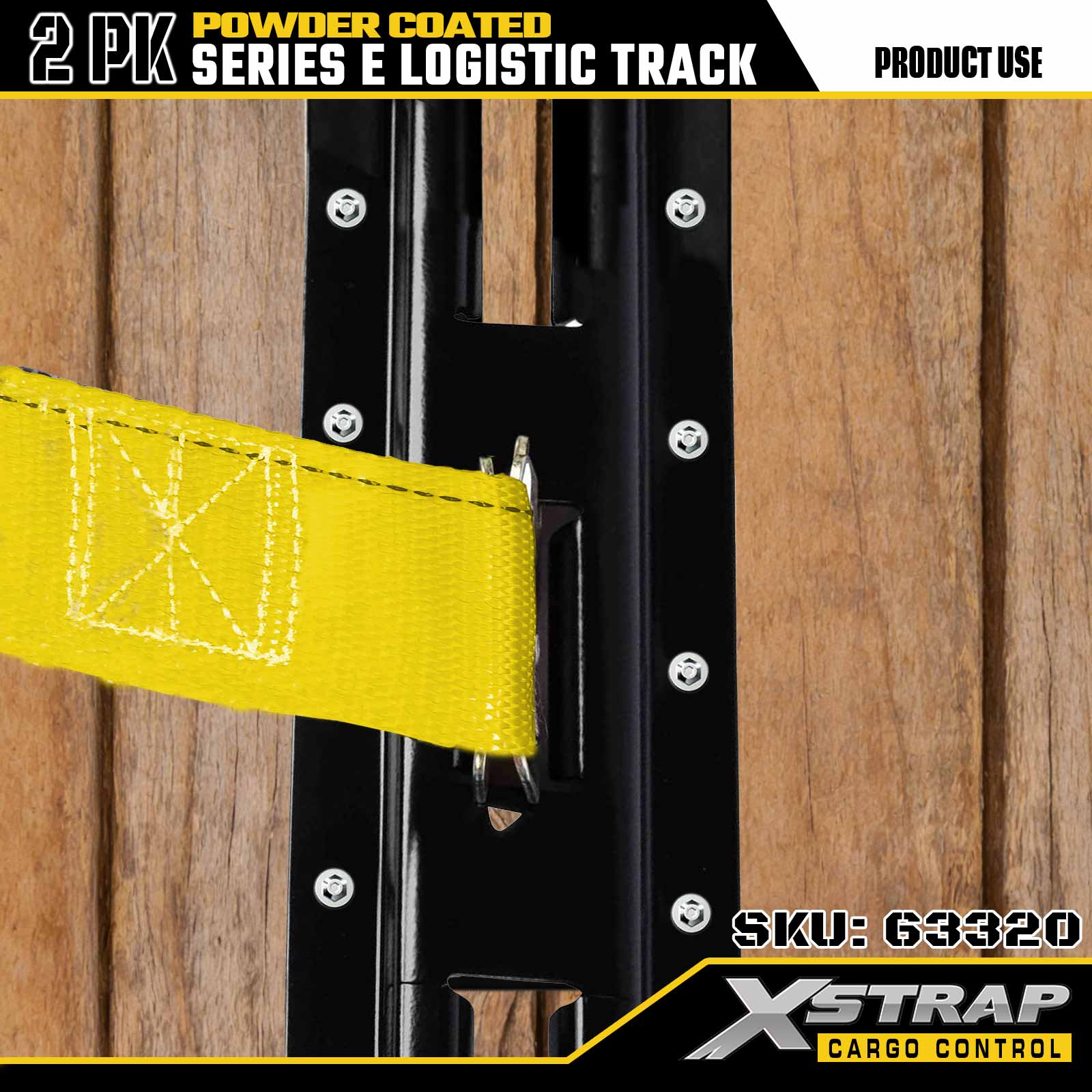Xstrap 63320 5 ' Szara szyna logistyczna typu E — stal o rozstawie 12 z powłoką proszkową, nośność 6000 funtów, 2 szt. do mocowania ładunku