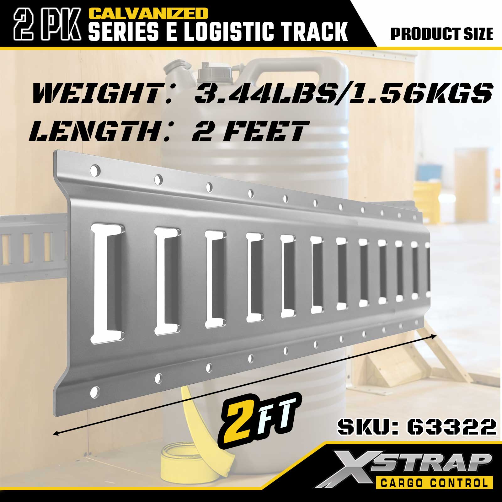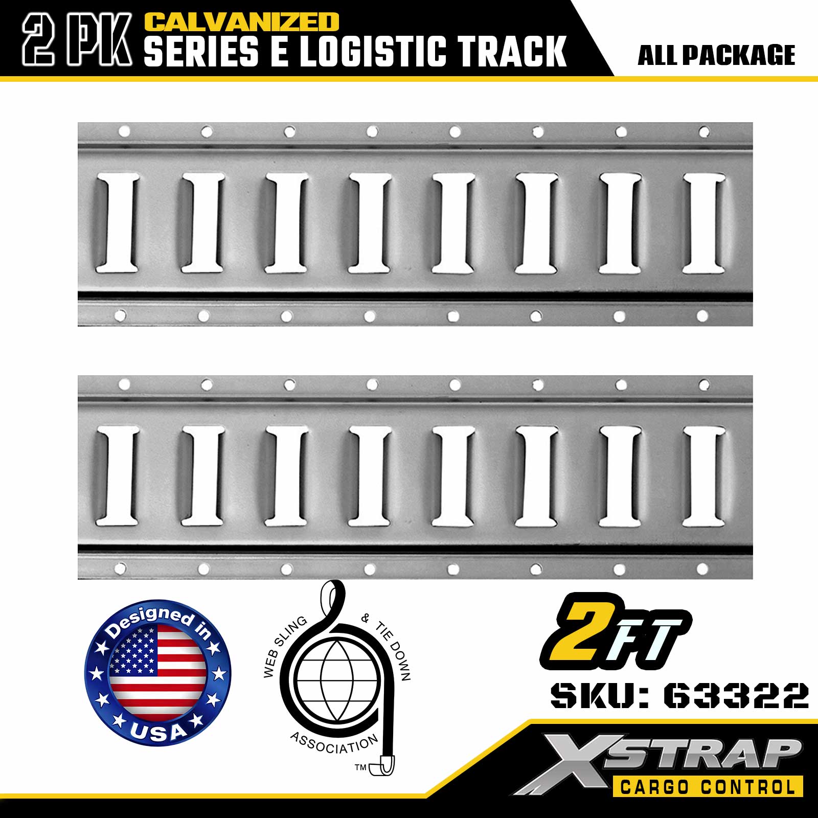 Xstrap 63322 2-stopowa galwanizowana srebrna szyna ładunkowa typu E — stal o grubości 12 z powłoką galwanizowaną, nośność 6000 funtów, 2 szt. dla