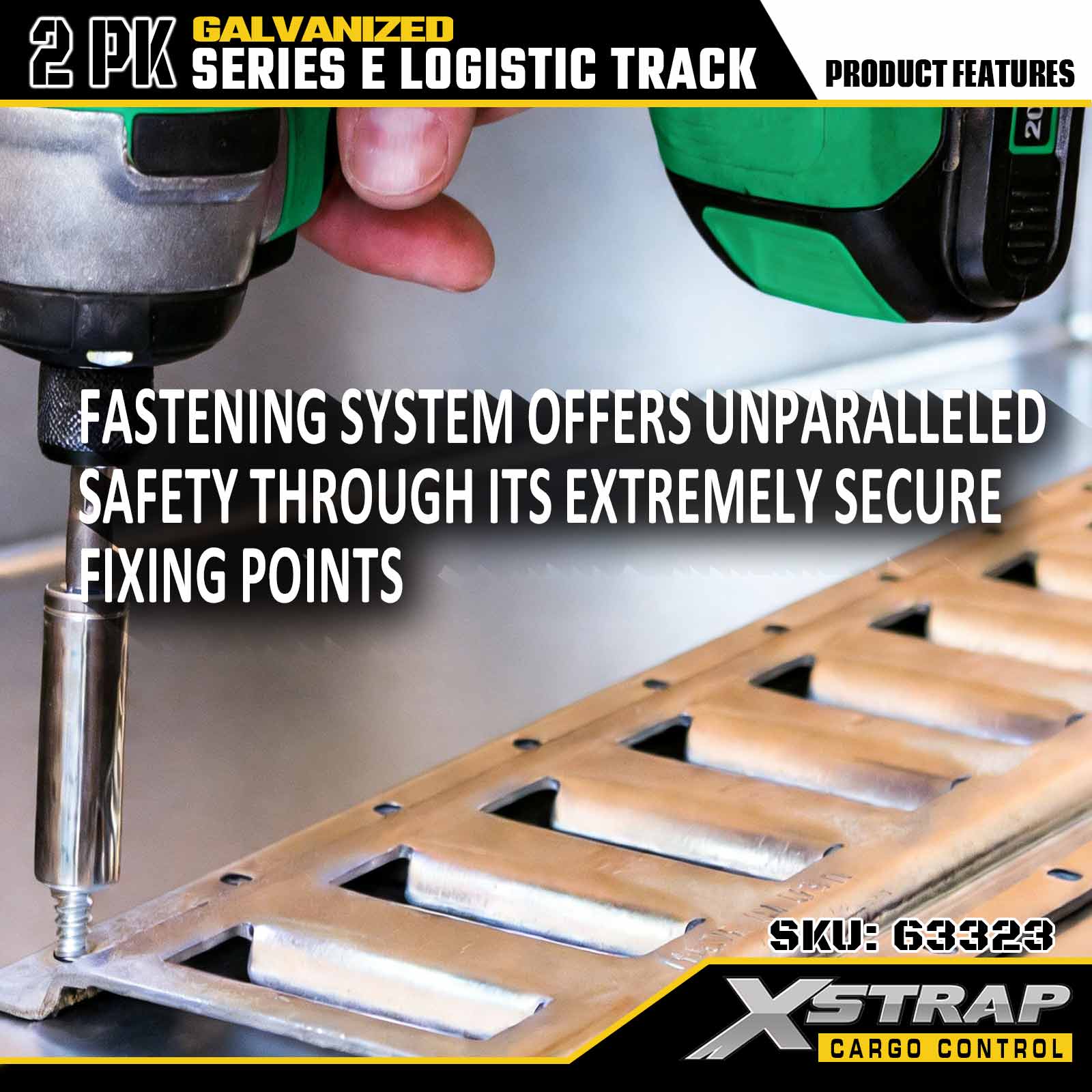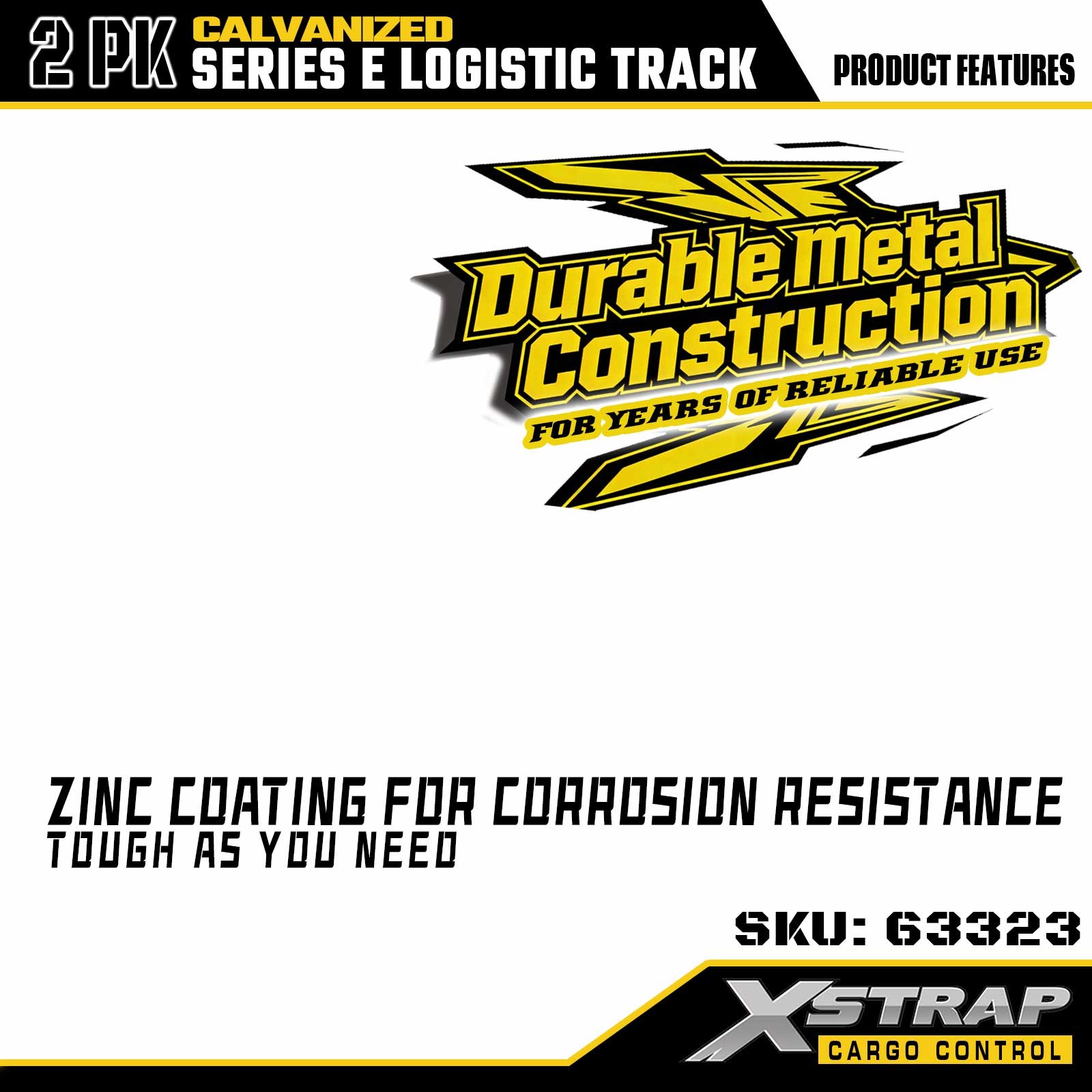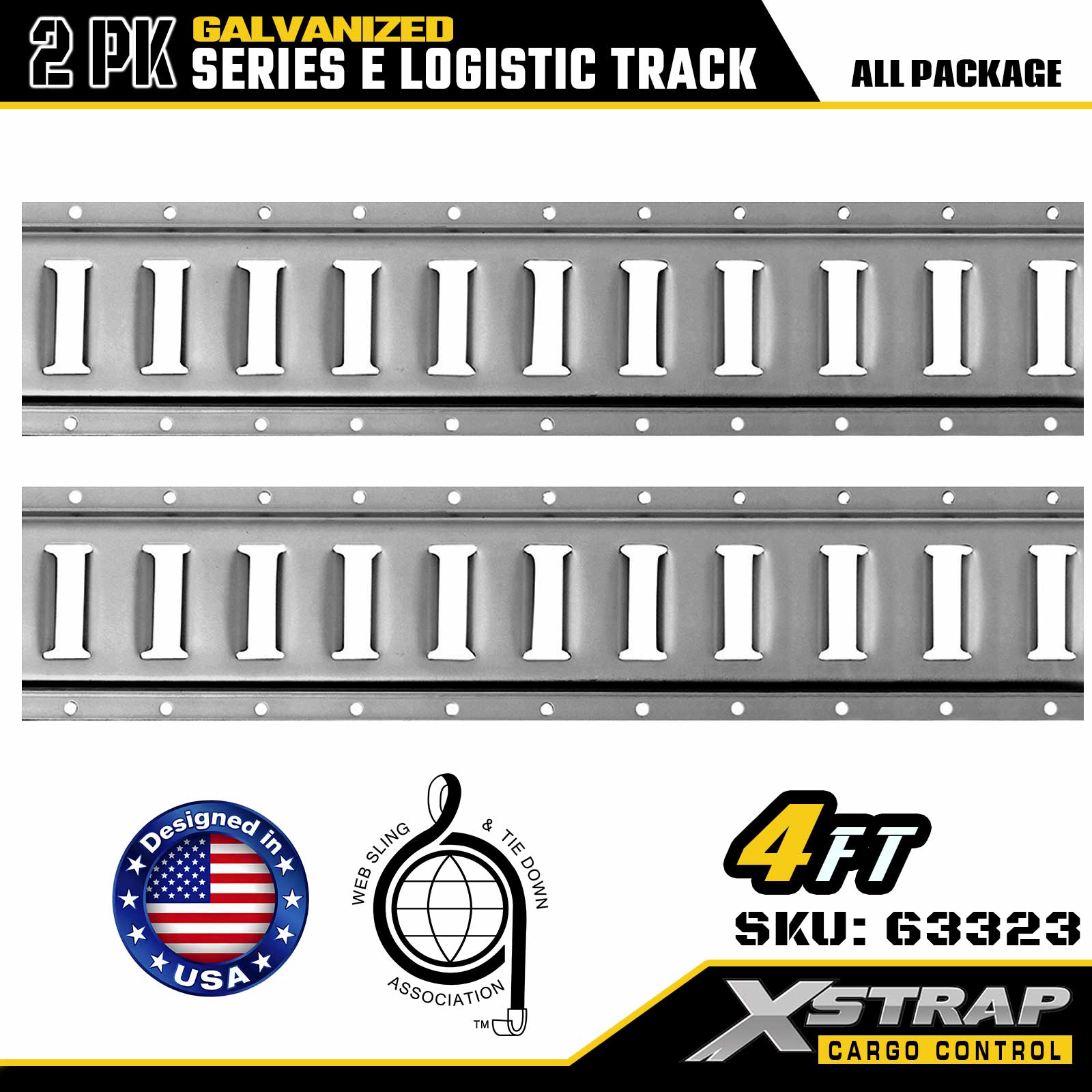 Xstrap 63322 4-stopowa, galwanizowana szyna mocująca E-Track w kolorze srebrnym — stal o grubości 12 z ocynkowanym wykończeniem, nośność 6000 funtów, 2 sztuki do mocowania ładunku