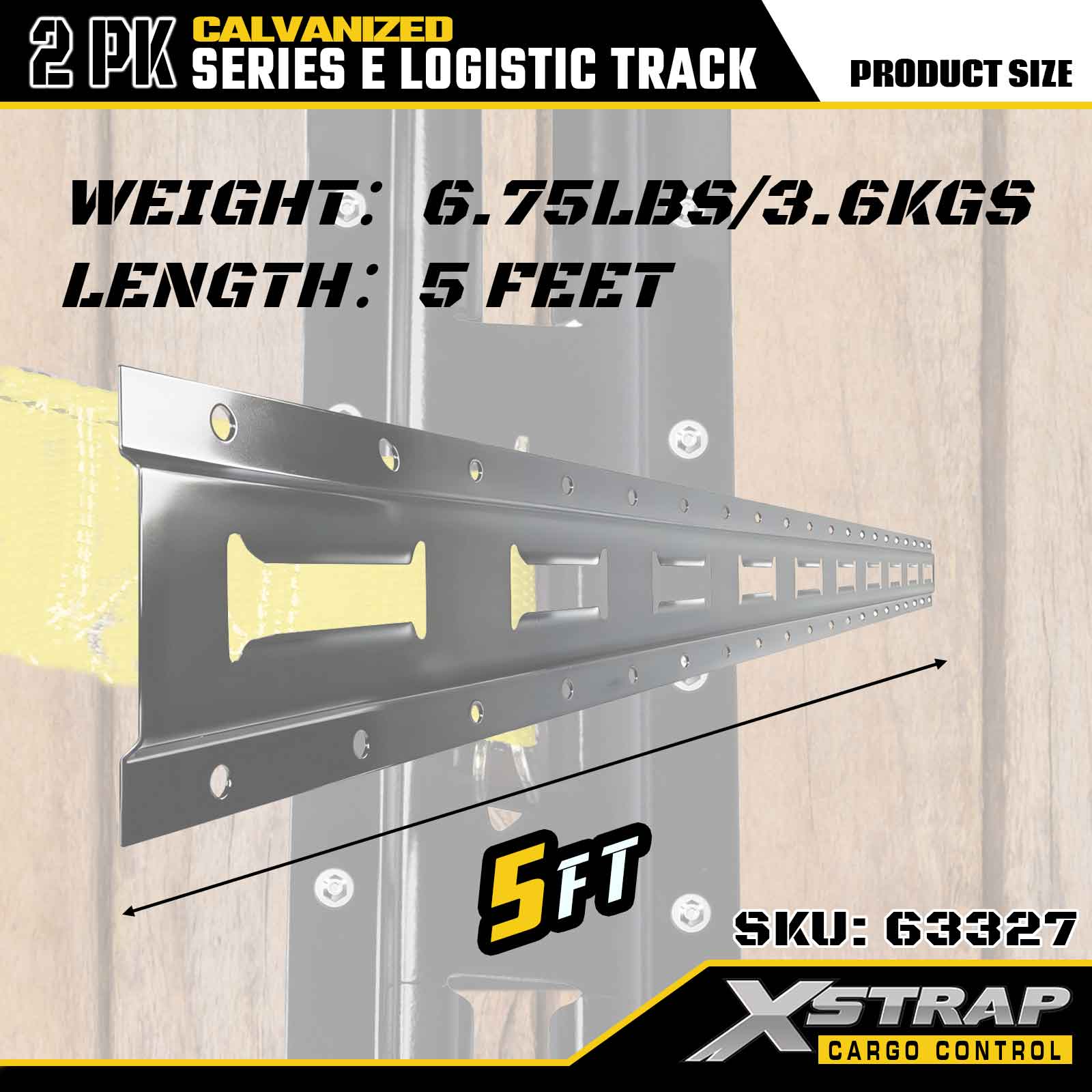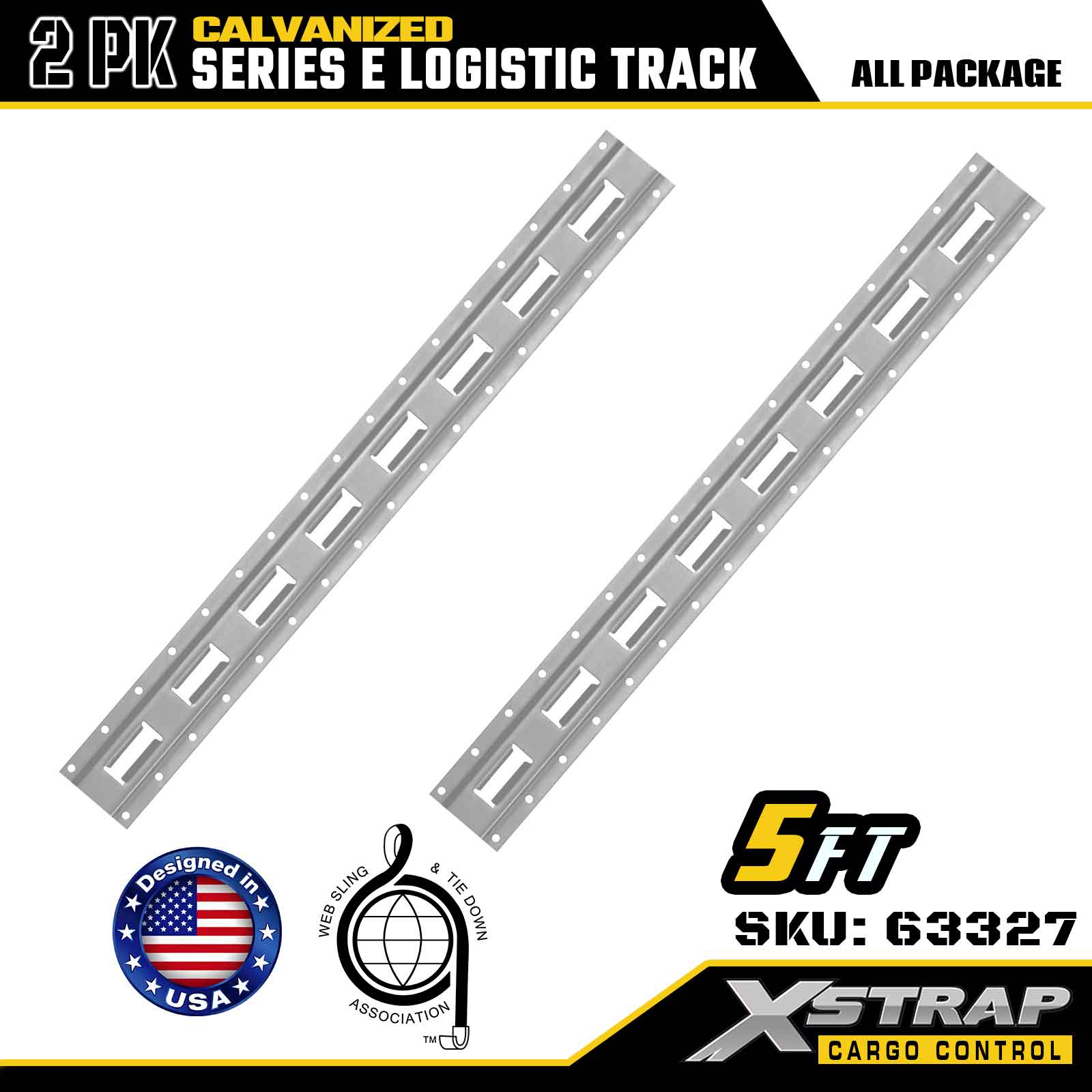 Xstrap 63327 5 stóp Galwanizowana szyna do mocowania ładunku w kolorze srebrnym E-Track — stal o grubości 12 z cynkowaniem ogniowym, udźwig 6000 funtów, 2 sztuki do zabezpieczenia ładunku