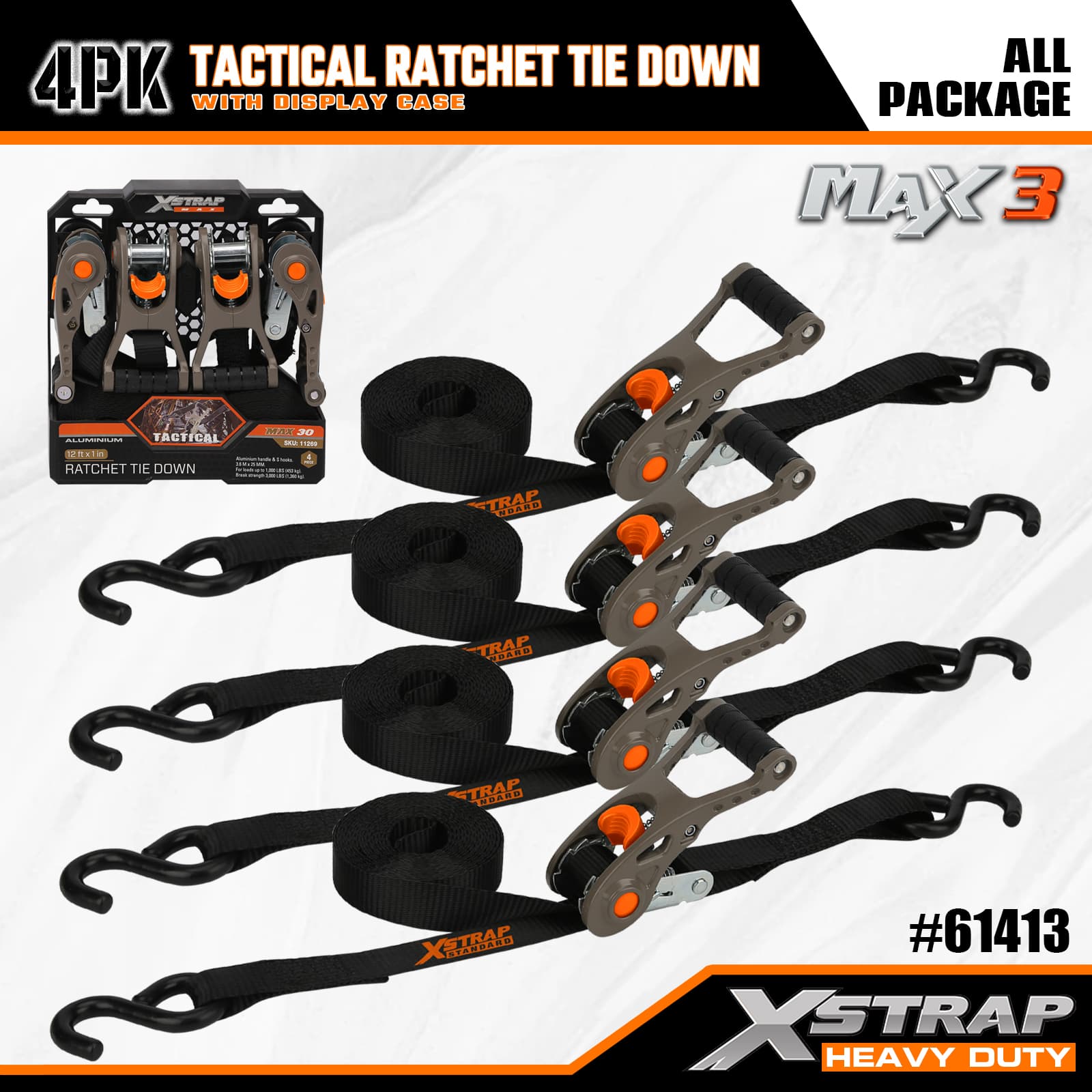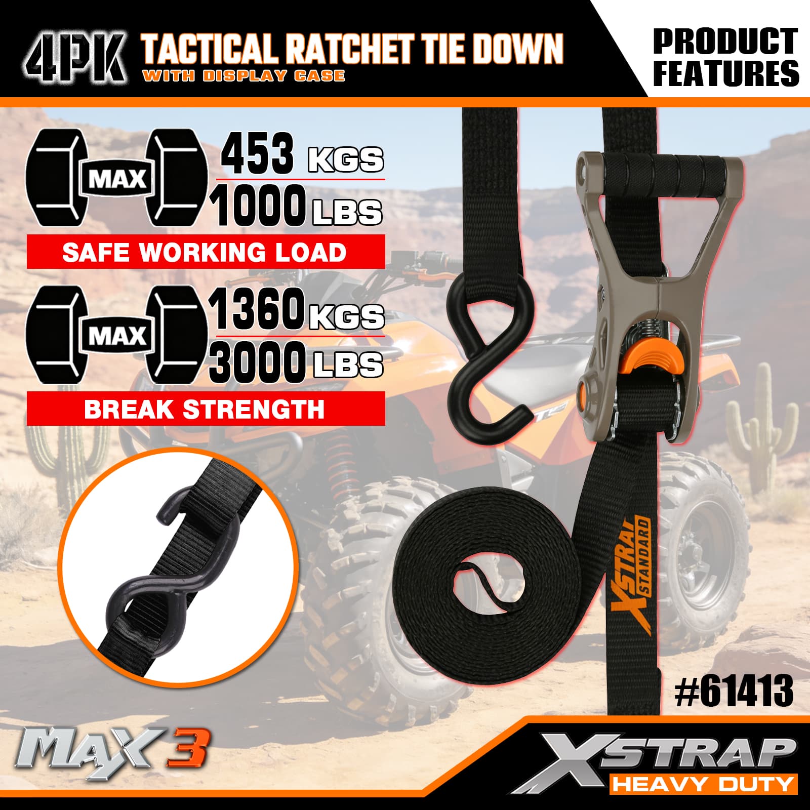 - Taktyczna aluminiowa konstrukcja zapadkowa: posiada solidny aluminiowy uchwyt metalowy zapewniający płynne i niezawodne napinanie - intuicyjny w obsłudze, dzięki czemu zarówno okazjonalni, jak i częsti użytkownicy mogą szybko zabezpieczyć ładunek.