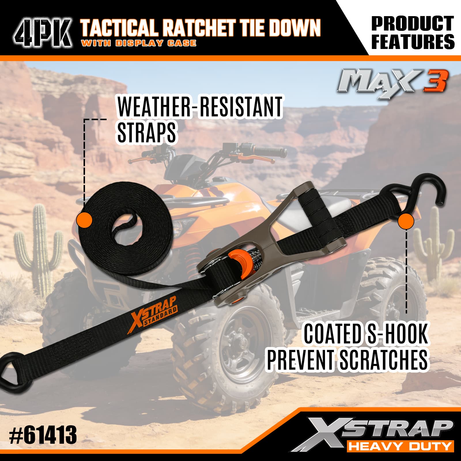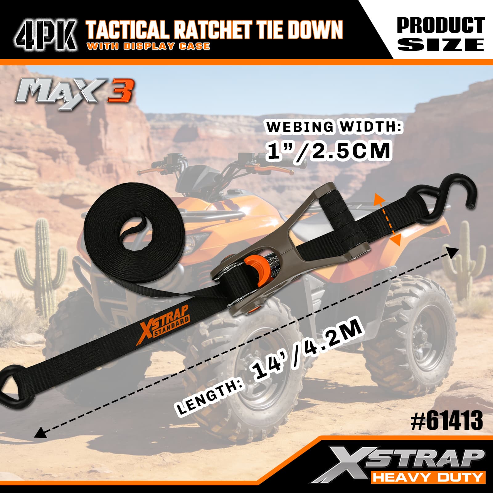 Xstrap 4 taktyczne paski do mocowania zapadkowego z miękką pętlą, poliestrowy pasek mocujący o wymiarach 1” x 14 cali, pasek zapadkowy o udźwigu 1000 funtów, pasy zabezpieczające do mocowania ładunku z haczykami S do samochodów ciężarowych, SUV-ów i motocykli.