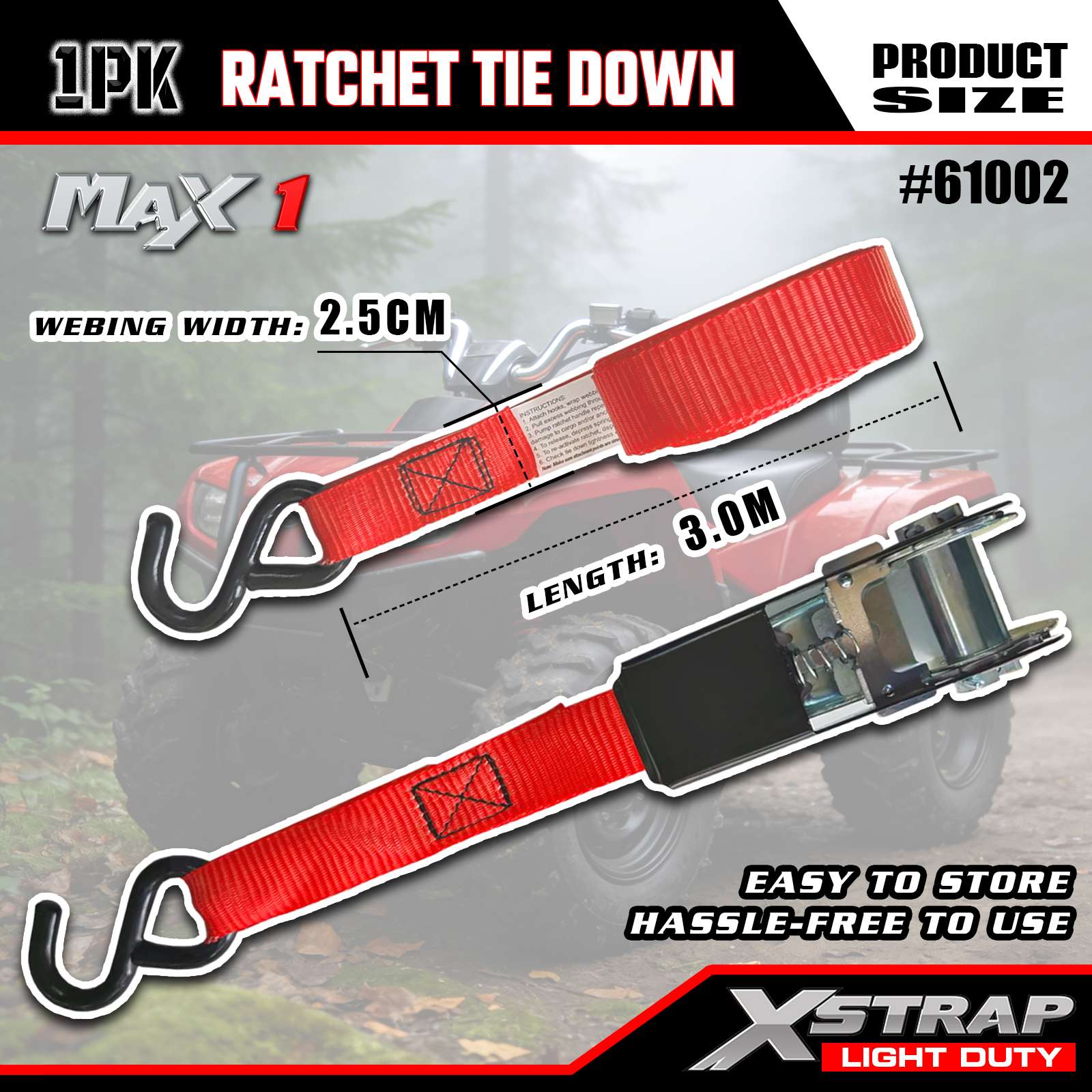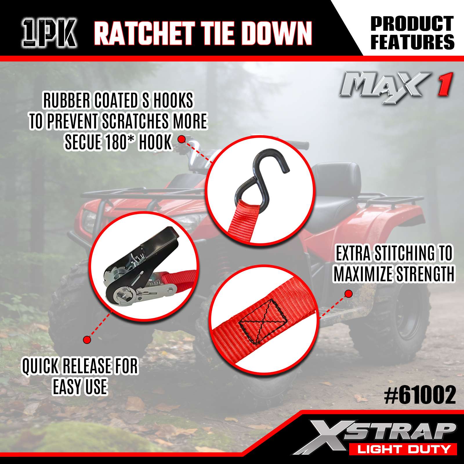 Xstrap 1 szt. Pasków mocujących z mechanizmem zapadkowym, 1"x10' - Nasadka ładunkowa 300 funtów - Wytrzymałość na zerwanie 900 funtów - Pasy cargo do urządzeń ruchomych, sprzętu do pielęgnacji trawników, motocykli, kamuflażu