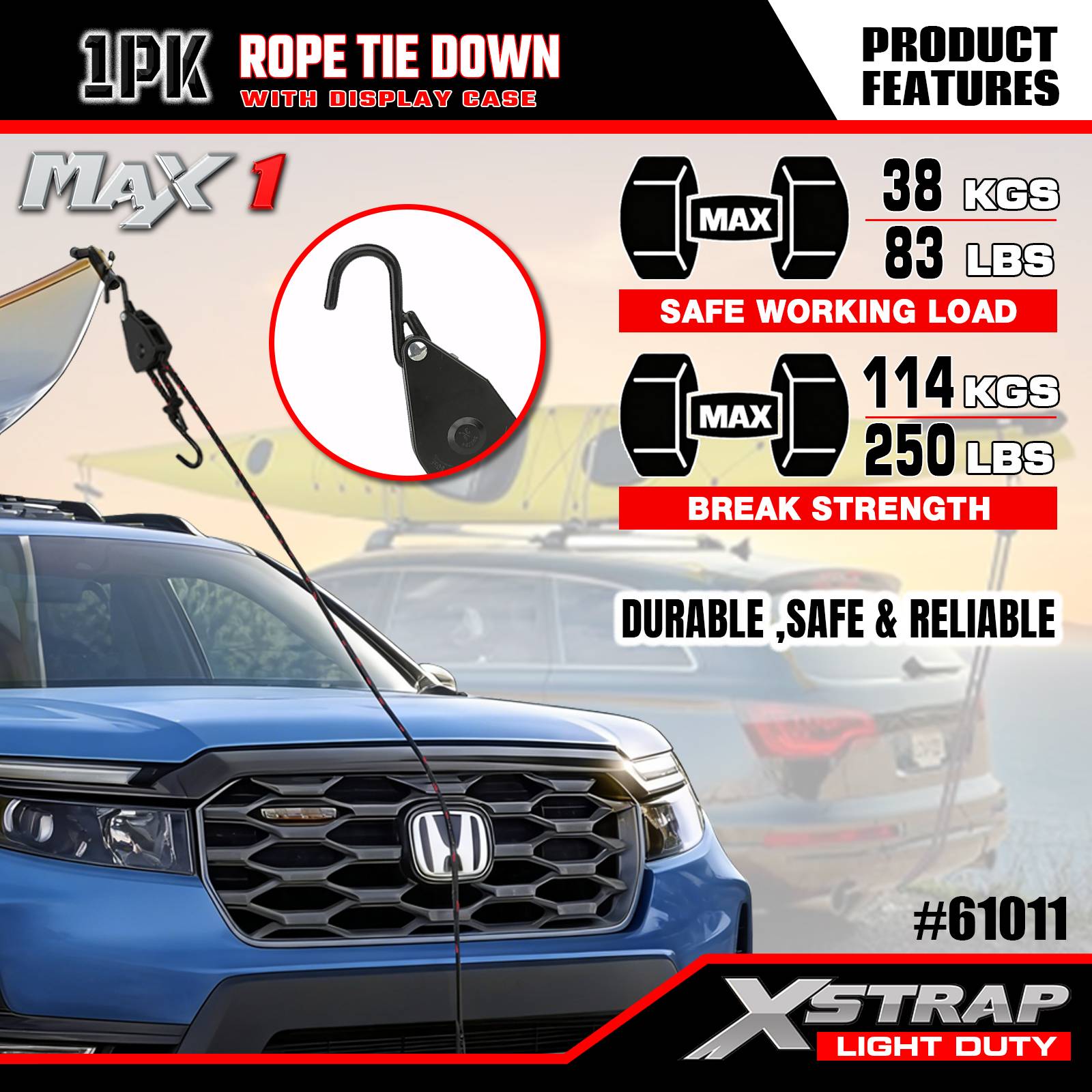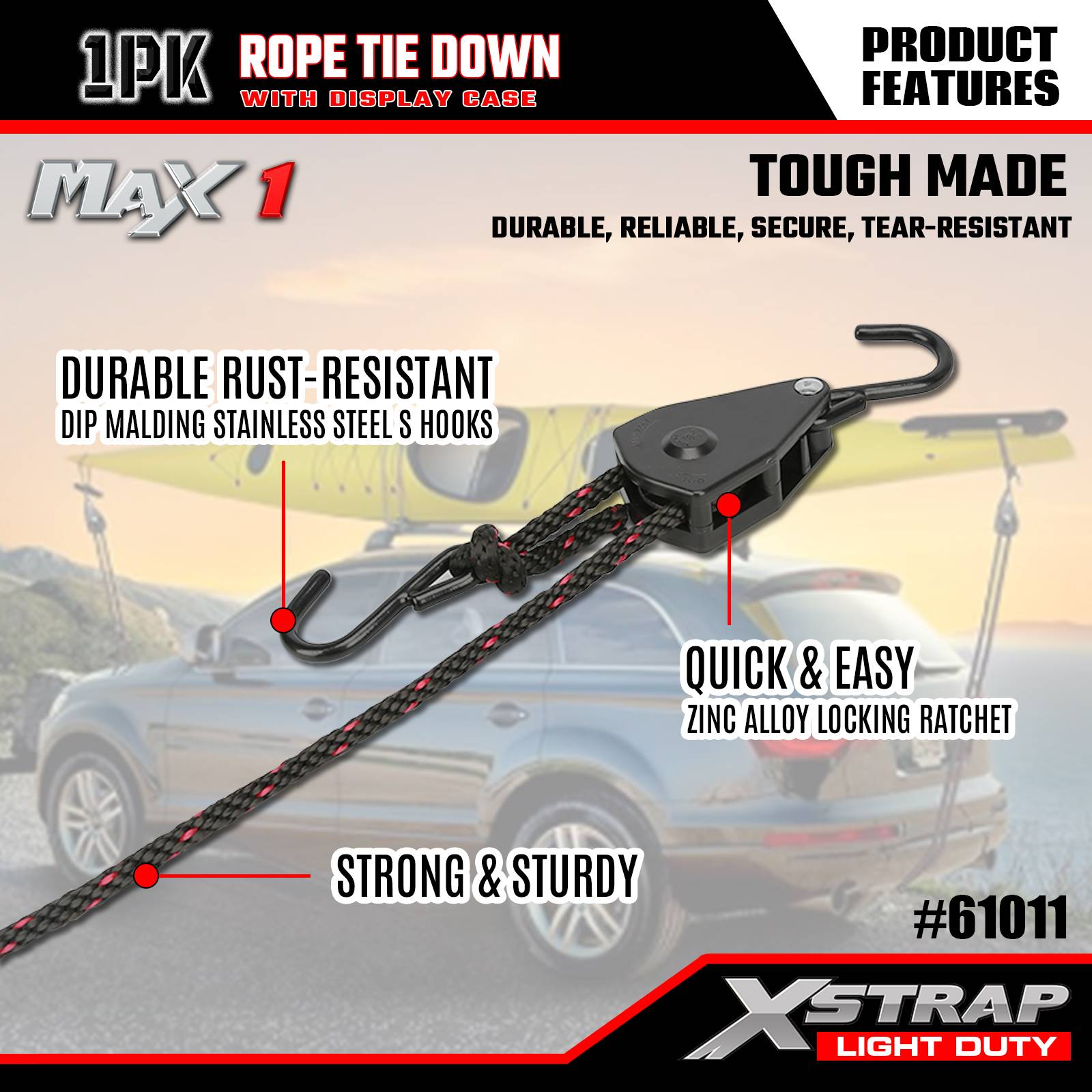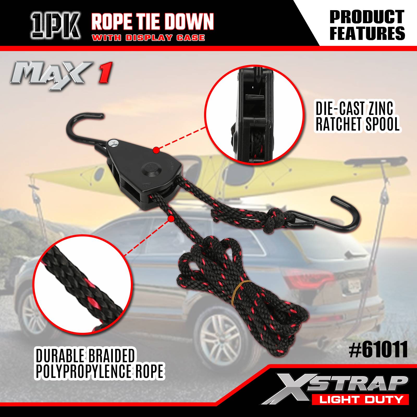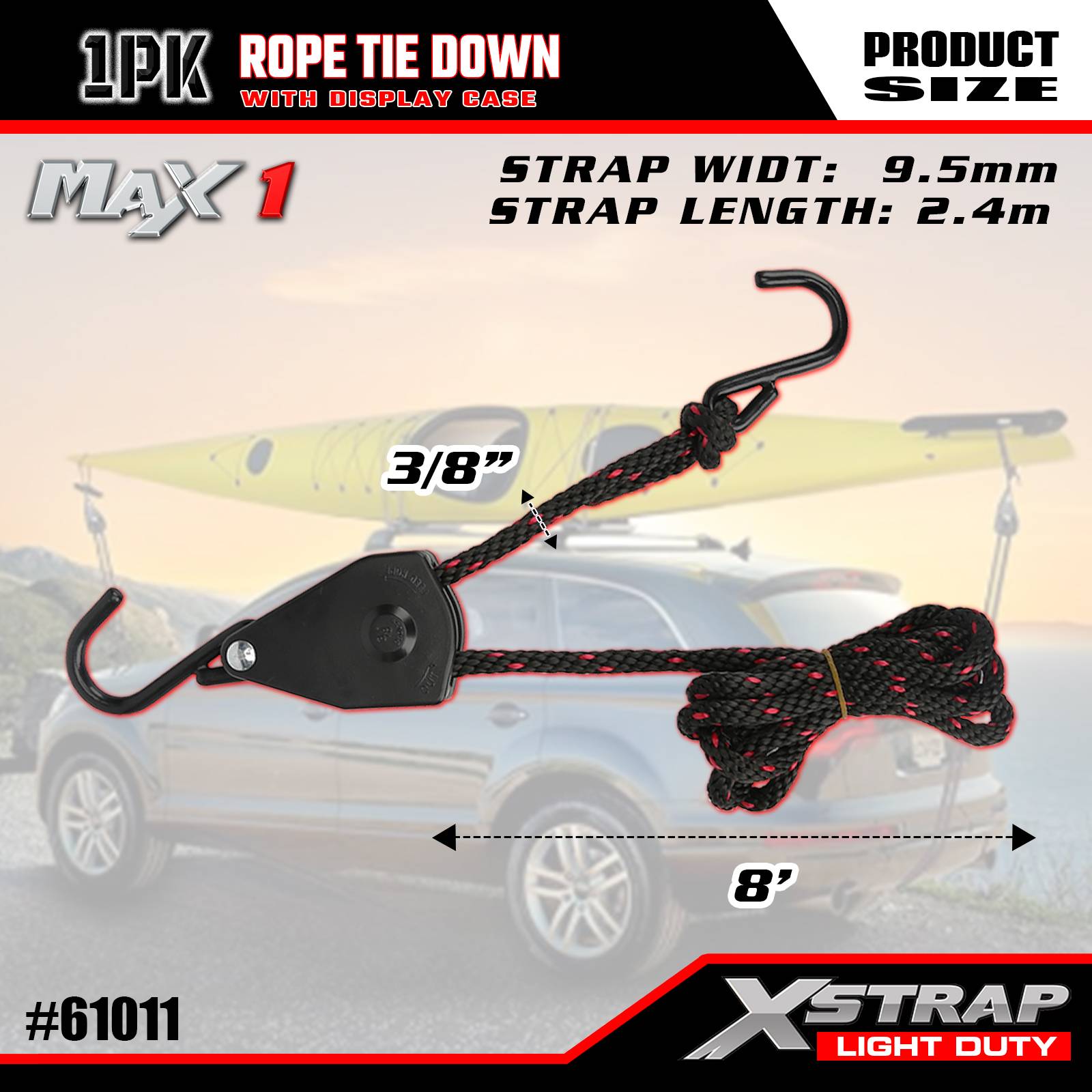 Xstrap, 1 opakowanie pasów do mocowania liny, 3/8” x 8 stóp – 83 lbs, wytrzymałość na zerwanie – paski cargo do mocowania lekkich ładunków (kajaki, sprzęt, mały sprzęt) do pojazdów/racków