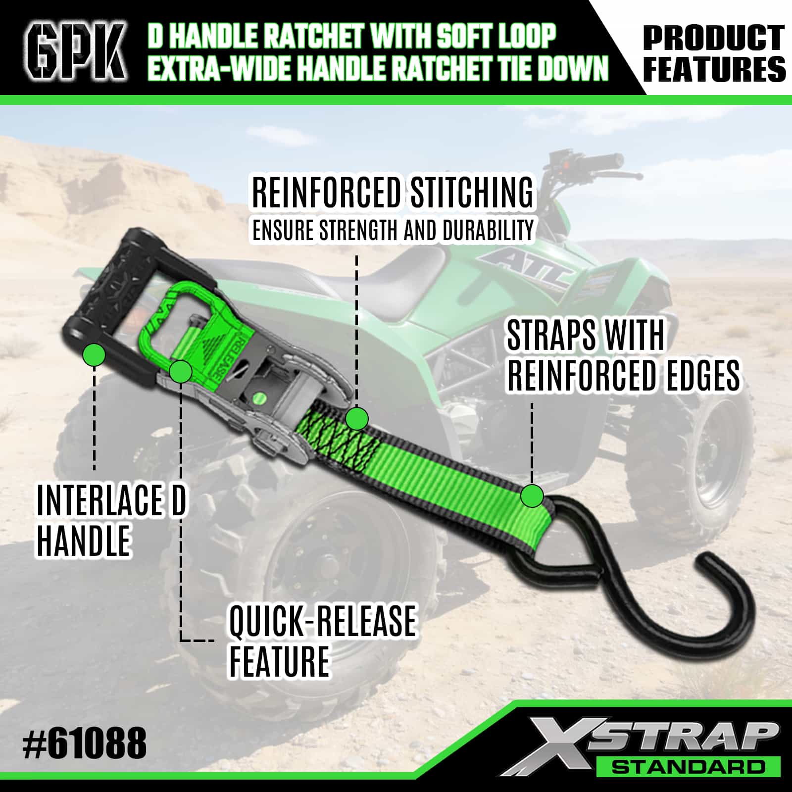 Xstrap 6 aluminiowych zapadkowych pasków do mocowania, 1” x 14” i 1” x 16 cali poliestrowy pasek do mocowania. Pociągany pasek zapadkowy, o udźwigu 500 funtów i 1100 funtów. Pasy zabezpieczające do mocowania ładunku z hakami S i podwójnymi hakami J do kontroli ładunku Pickup, SUV, samochodowe bagażniki motocyklowe.