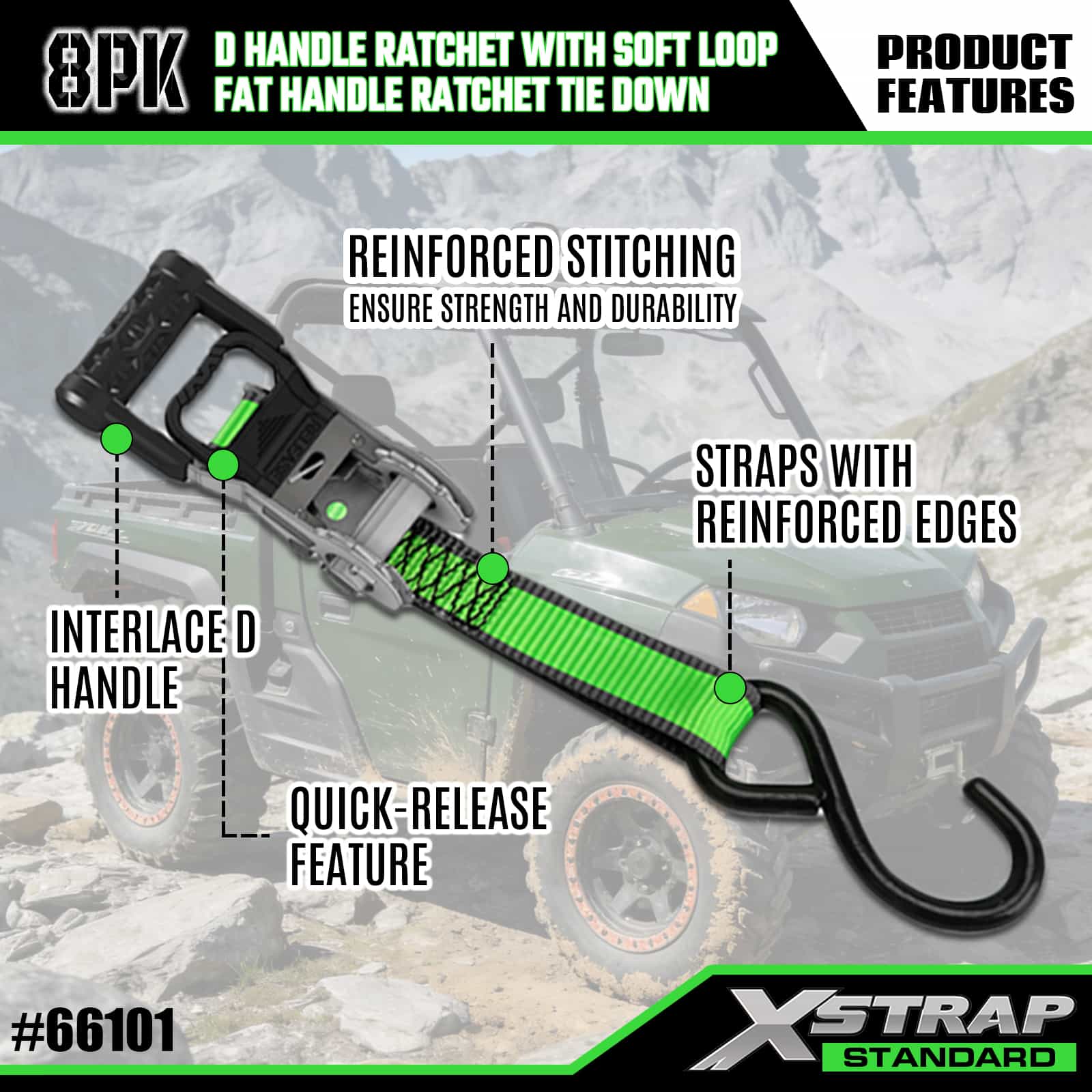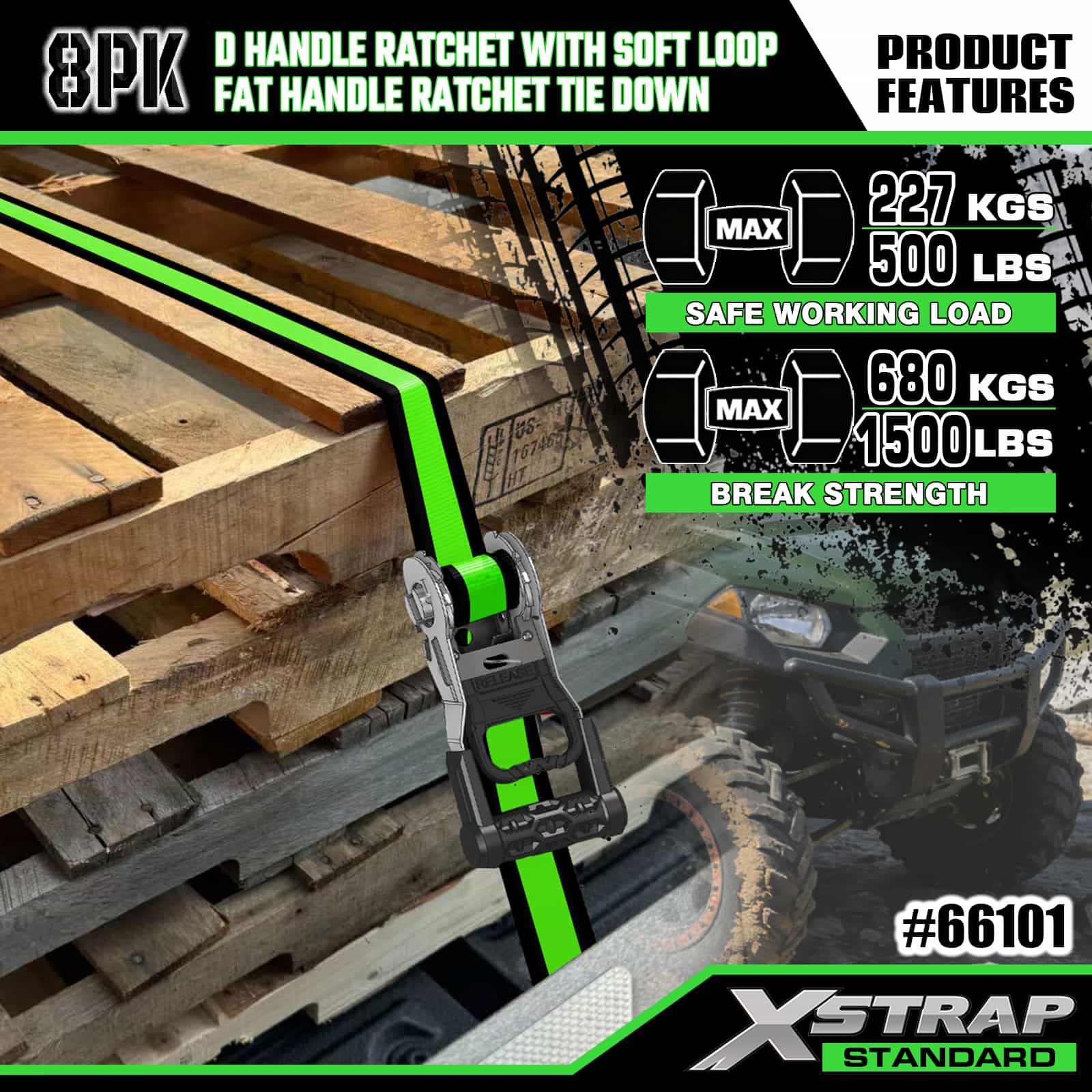Xstrap 8 szt. Aluminiowych zapadkowych pasów do mocowania, 1” x 14’ i 1” x 12’ poliestrowych pasków mocujących. Pociągany pasek zapadkowy, o udźwigu 500 funtów, pasy zabezpieczające do mocowania ładunku z haczykami S do kontroli ładunku Pickup, SUV, samochodowe bagażniki motocyklowe.