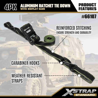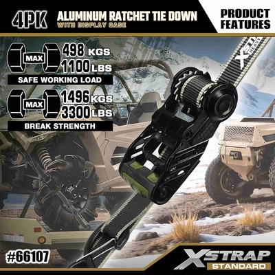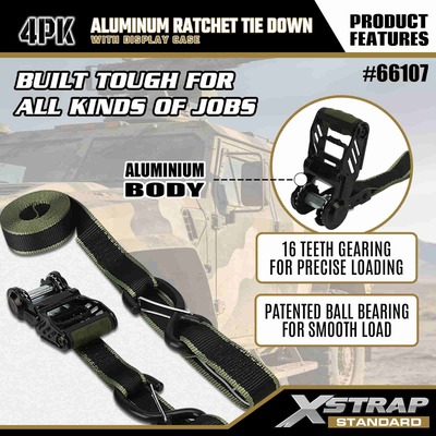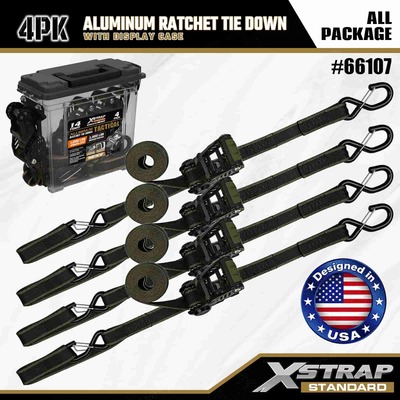 Xstrap 4-pakowy aluminiowy pasek do mocowania zapadkowy, 1-1/4” x 14” Poliestrowy pasek do mocowania z miękką pętlą, pasek zapadkowy do ciągnięcia, udźwig 1000 funtów Pasy zabezpieczające do mocowania ładunku z hakami zabezpieczającymi S do kontroli ładunku Pickup, SUV, Samochody Top Racks Motocykl.