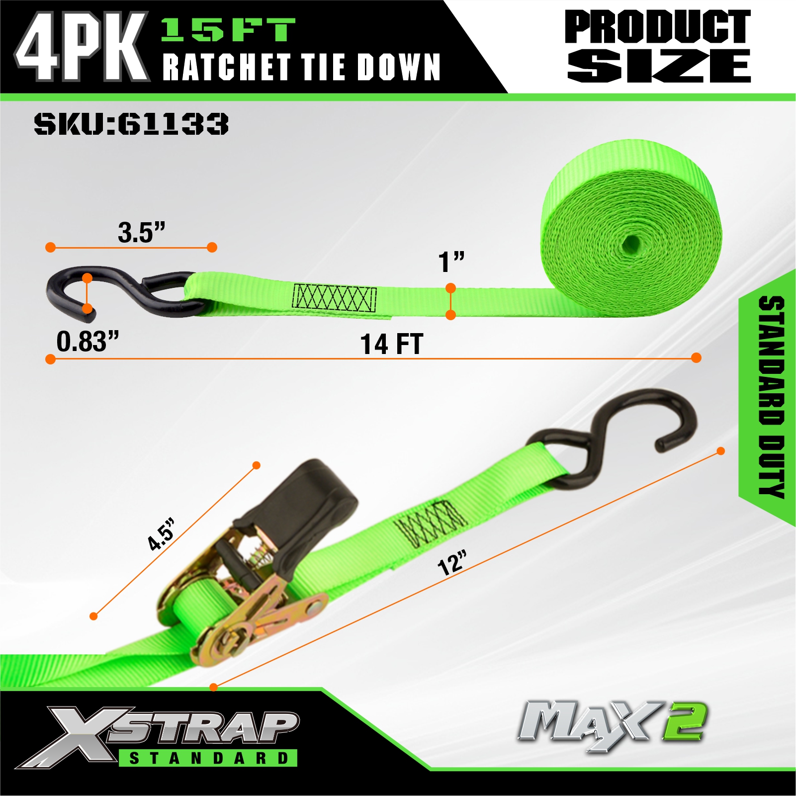 Xstrap 4 pakiety zapadkowych pasów do mocowania, 1” x 15 cali poliestrowy pasek do mocowania zapadkowy, pasy zabezpieczające ładunek o udźwigu 500 funtów z hakami w kształcie litery S do pickupów, SUV-ów, bagażników samochodowych, motocykli, lekkich łodzi rybackich, skuterów wodnych, skuterów śnieżnych, traktorków ogrodowych.